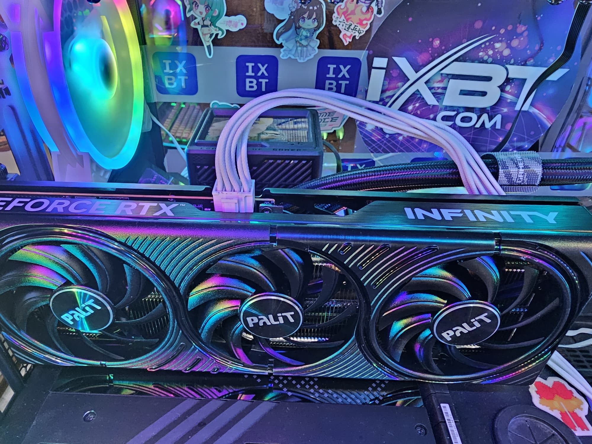Palit GeForce RTX 5060 Infinity3 (8 ГБ) — ускоритель бюджетного уровня (по сегодняшним меркам), имеющий сравнительно компактные размеры: 29×12 см и 2 слота в толщину. Кулер тихий, при этом карта может потреблять до 145 Вт, имеет один 8-контактный разъем питания (PCIe 2.0) и 4 видеовыхода: 1 HDMI 2.1b и 3 DisplayPort 2.1b — последний обеспечивает пропускную способность до 80 Гбит/с в режиме передачи UHBR 20 и позволяет подключить 8K-дисплей с частотой обновления 60 Гц по одному кабелю.