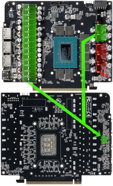 Суммарное количество фаз питания у карты Palit — 19 (16+3).