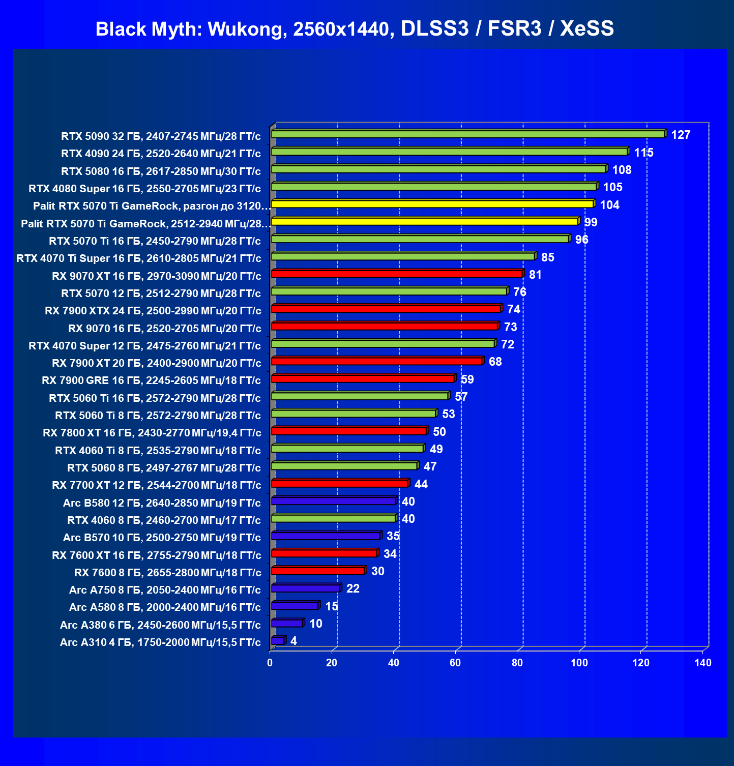 | 04 | Palit RTX 5070 Ti GameRock, 2512—2940 МГц/28 ГТ/с | 12437 | 1446 | 86 000 |
