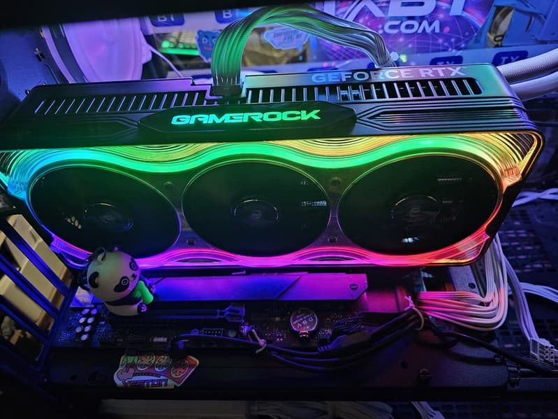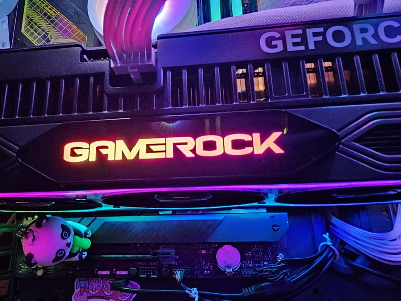 Отметим, что в комплект поставки карт серии GameRock входит кабель для подключения к разъему ARGB (5 В) на материнской плате, чтобы синхронизировать работу подсветки с платой. В этом случае запускать утилиту ThunderMaster вообще не требуется: карта самостоятельно определит подключение, и подсветка будет синхронизирована по умолчанию.
