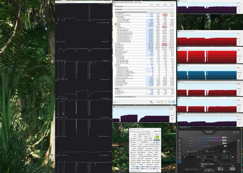 Я попробовал ручной разгон и получил максимальные частоты 3120/31032 МГц, что обеспечило прирост в играх в разрешении 4K в среднем на 7,9% относительно референсных значений. Лимит потребления поднять можно на 6%, поэтому энергопотребление карты выросло до 320 Вт.