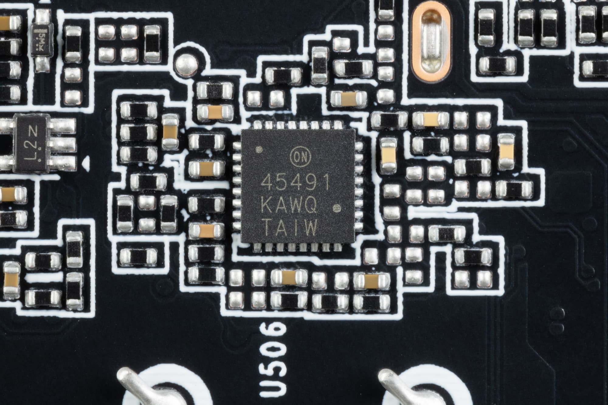 На оборотной стороны PCB имеется контроллер для мониторинга (отслеживания напряжений и температур) On Semi.