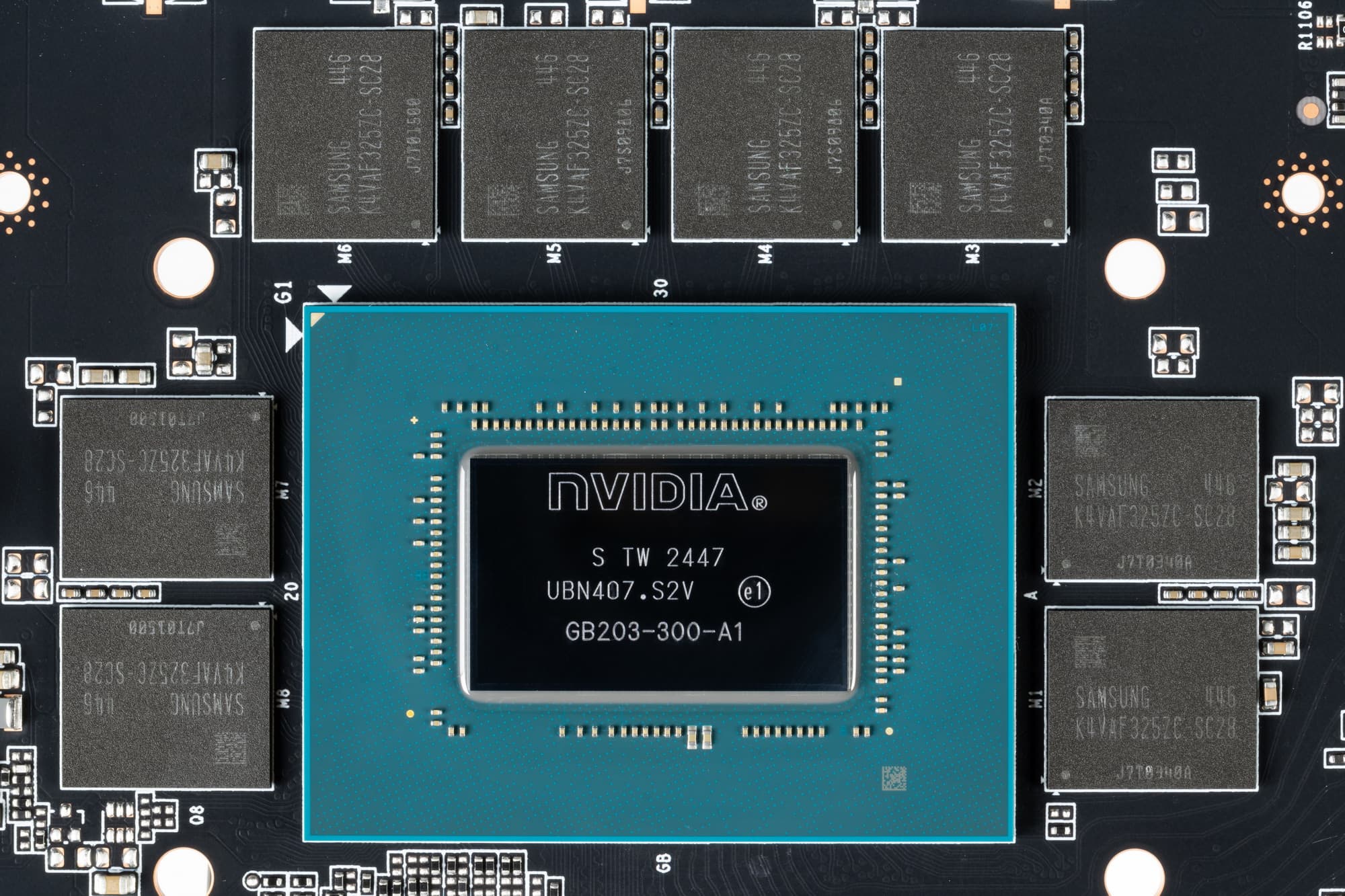 Ядро произведено на 47-й неделе 2024 года (кристалл выполнен по техпроцессу TSMC 4N — по разным оценкам это 5 нм). Маркировка — GB203-300 (-300 обычно означает урезанный в той или иной мере чип, а -400 — полнофункциональный, то есть все блоки активны).