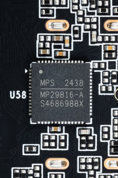 16 фазами питания ядра управляет ШИМ-контроллер MP29816 (Monolithic Power Systems). Он рассчитан максимум на 16 фаз и расположен на тыльной стороне платы.