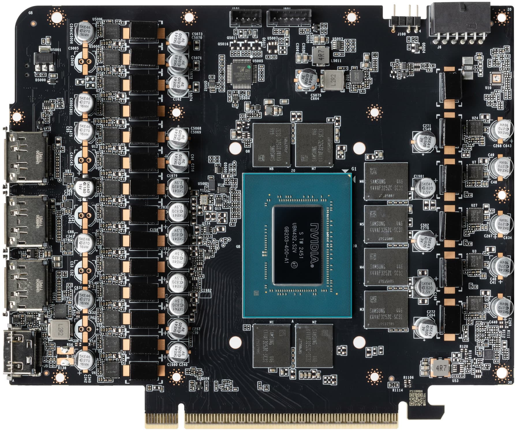 Карта имеет стандартный набор видеовыходов: три DP 2.1b и один HDMI 2.1b.
