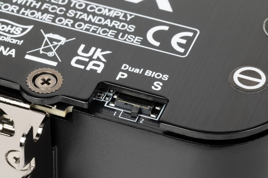 Карта имеет два режима работы, они заложены в двух вариантах BIOS, которые переключаются с помощью переключателя на переднем торце карты: P (performance / производительный, он же 1) и S (silent / тихий, он же 2). Разница между режимами заключается, по сути, только в оборотах вентиляторов, предел энергопотребления в обоих случаях составляет 300 Вт.