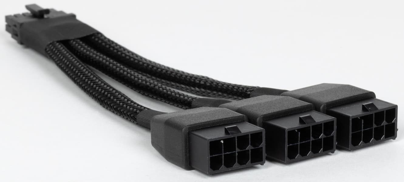 В комплекте поставки карты имеется переходник на такой разъем с трех обычных 8-контактных (хорошо всем знакомых).