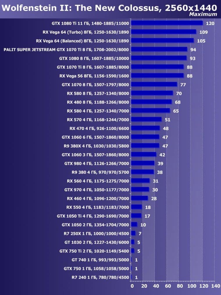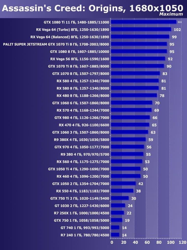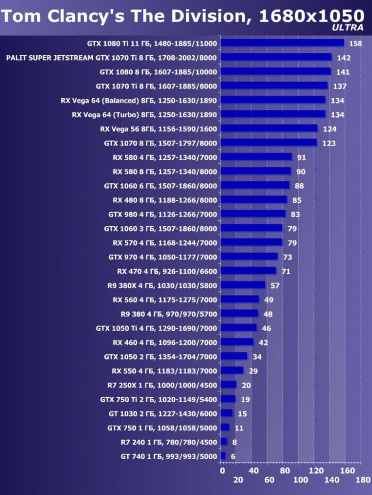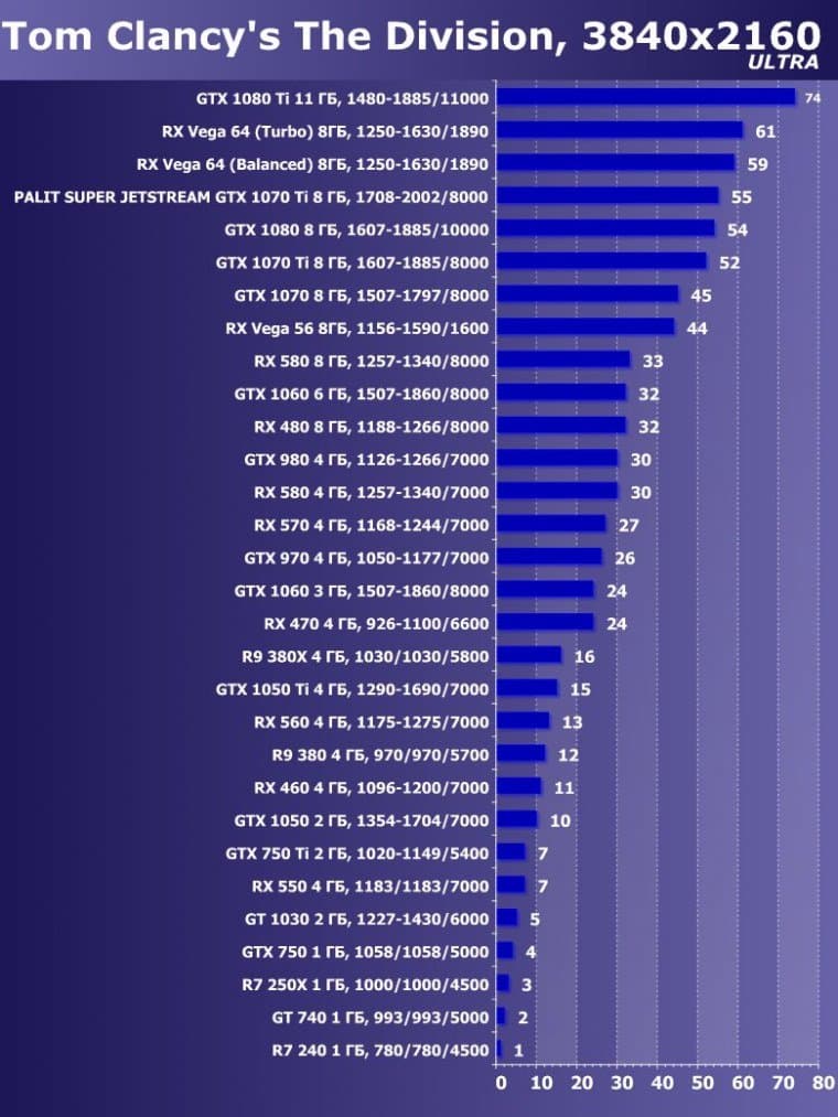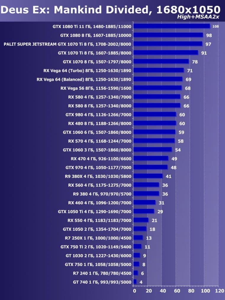 | 14 | Palit Super Jetstream GTX 1070 Ti 8 ГБ, 1708—2002/8000 | 613 | 2390 | 39 000 |