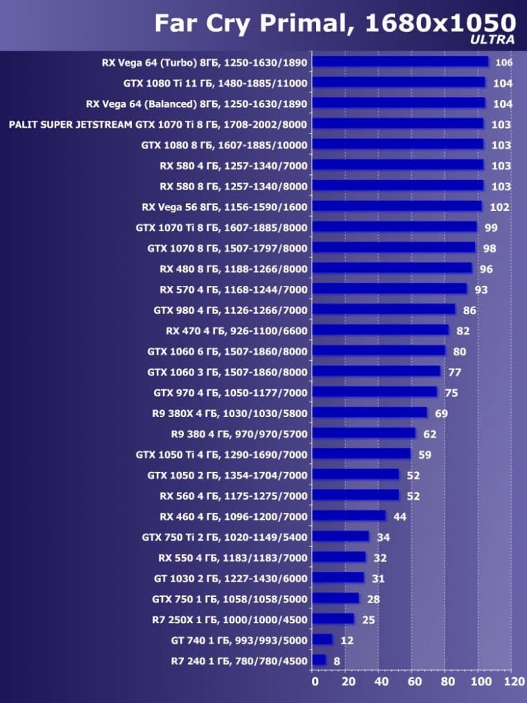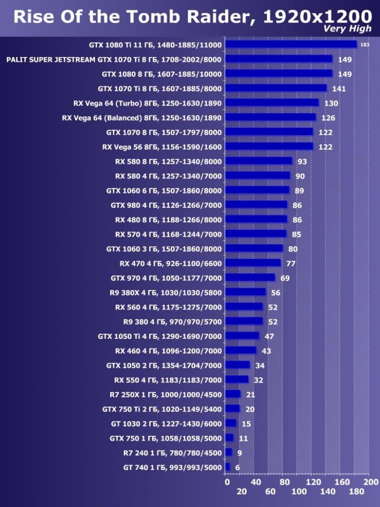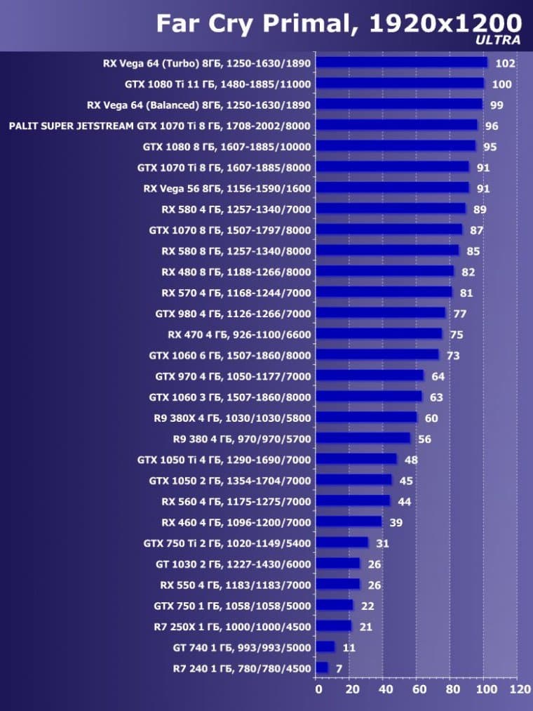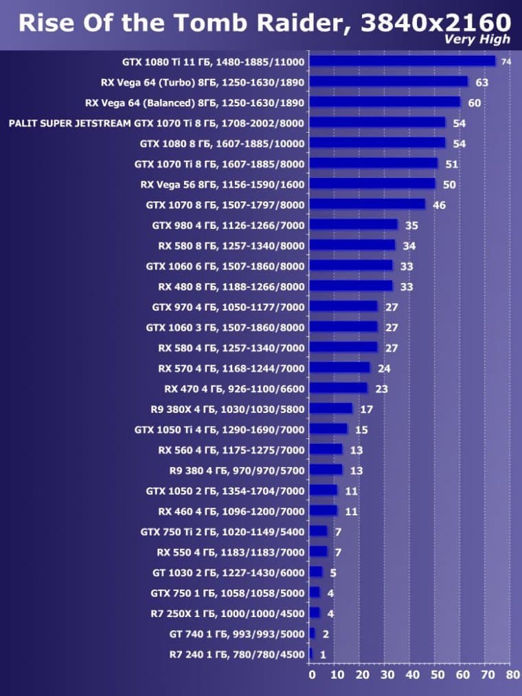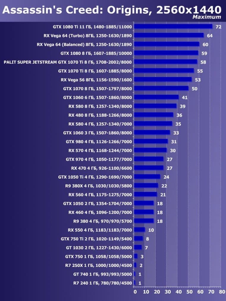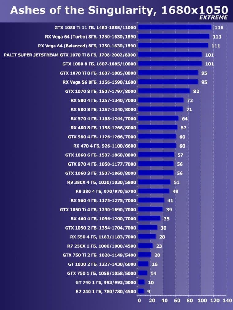 | 14 | Palit Super Jetstream GTX 1070 Ti 8 ГБ, 1708—2002/8000 | 613 | 2390 | 39 000 |