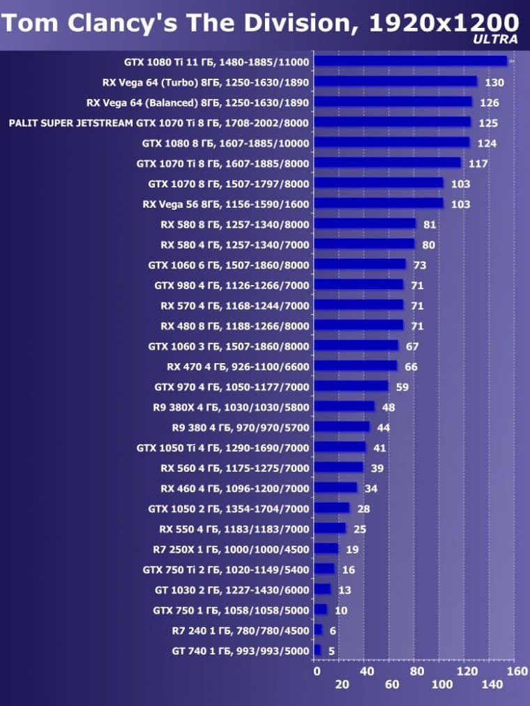 Рейтинг ускорителей iXBT.com демонстрирует нам функциональность видеокарт друг относительно друга и нормирован по самому слабому ускорителю — GeForce GT 740 (то есть сочетание скорости и функций GT 740 приняты за 100%). Рейтинги ведутся по 30 ежемесячно исследуемым нами в рамках i3D-Speed акселераторам. Из общего списка выбирается группа карт для анализа, куда входят GTX 1070 Ti и его конкуренты. Для расчета рейтинга полезности использованы розничные цены на начало января 2018 года.