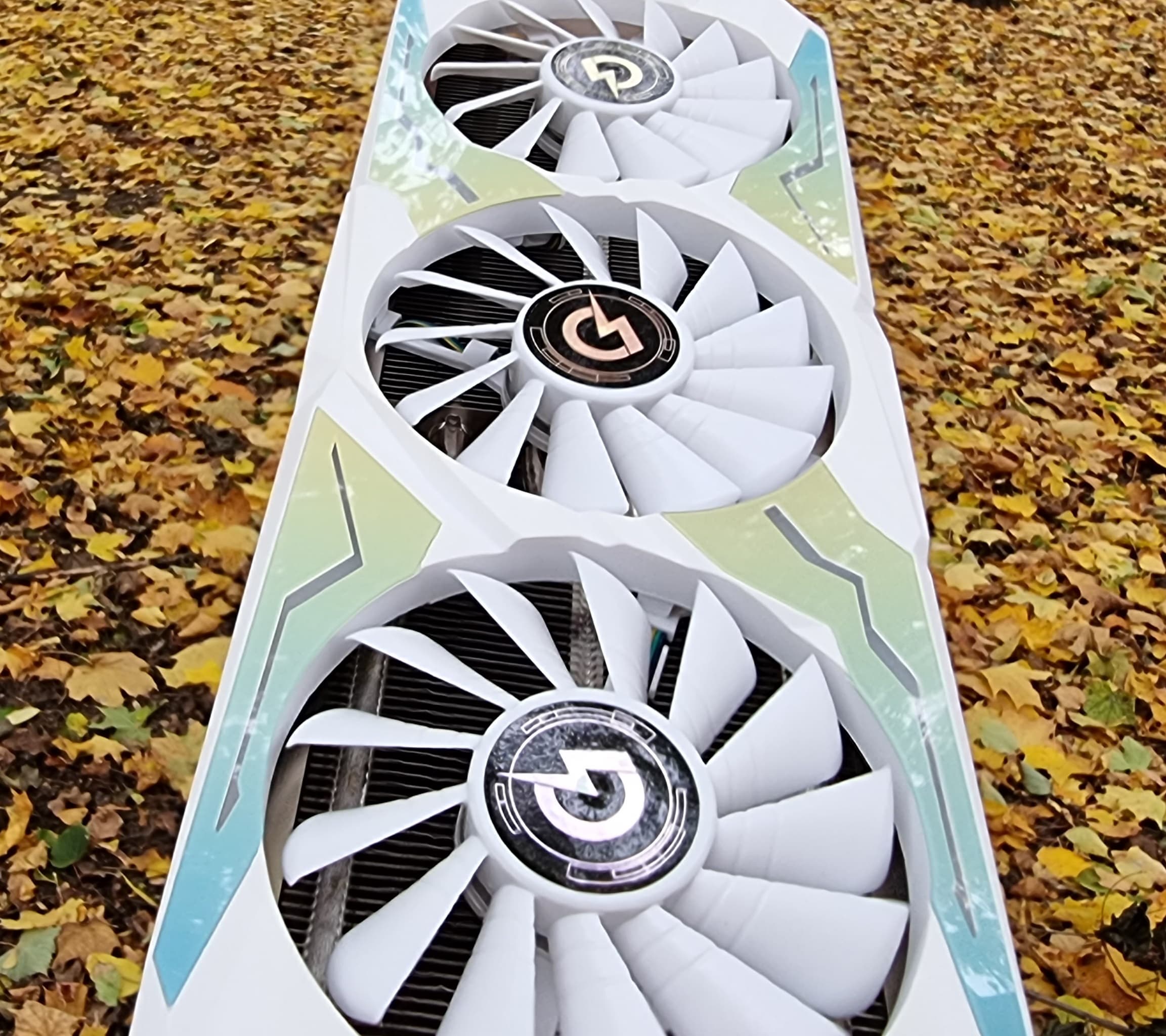 Сегодня мы рассмотрим необычную видеокарту с приятными дизайном и подсветкой, но со своими изъянами. Некоторые фотографии карточки были сделаны буквально за день до первого снегопада в Москве, они были сделаны с душой, и карта на золотистом фоне выглядит весьма богато.