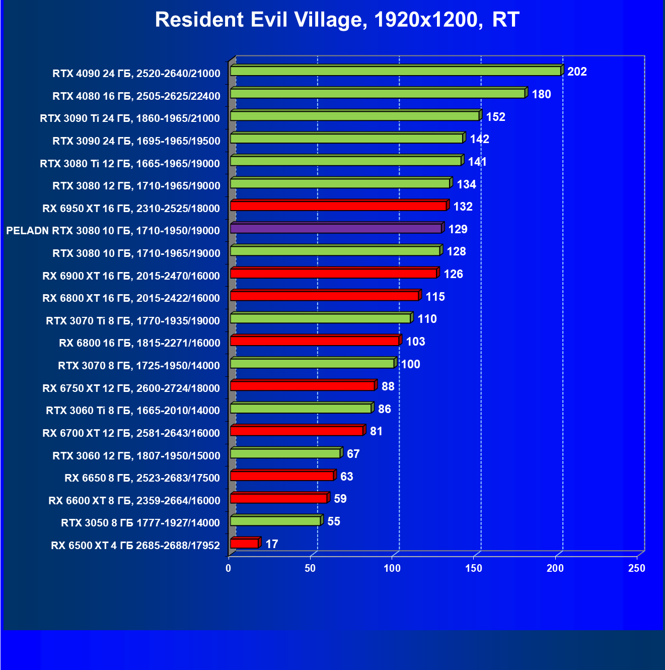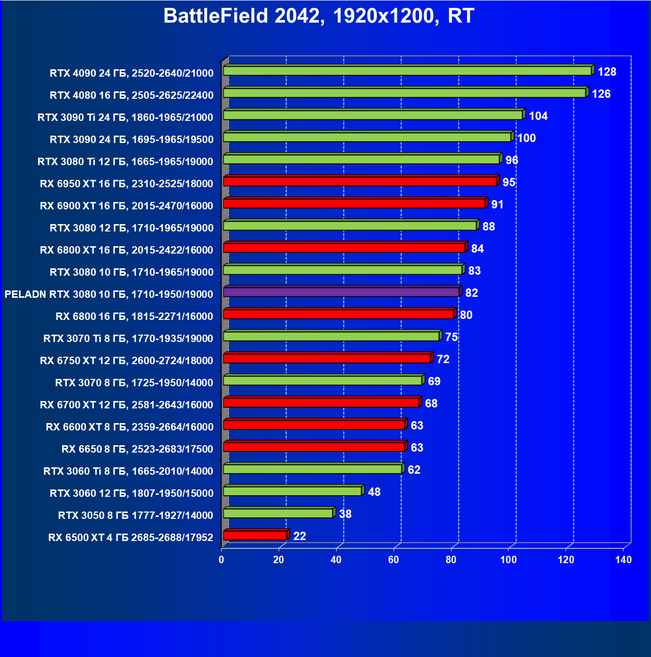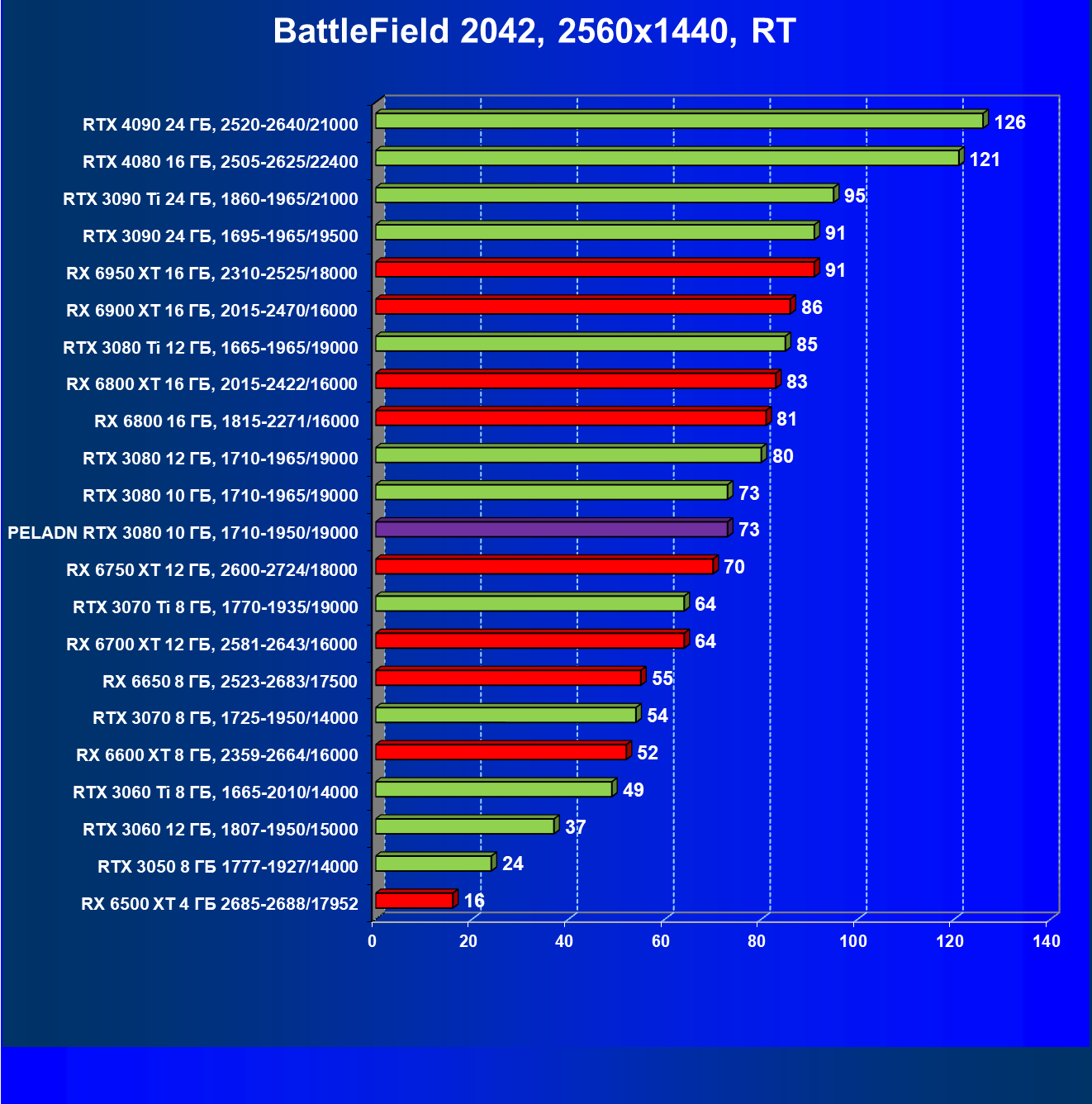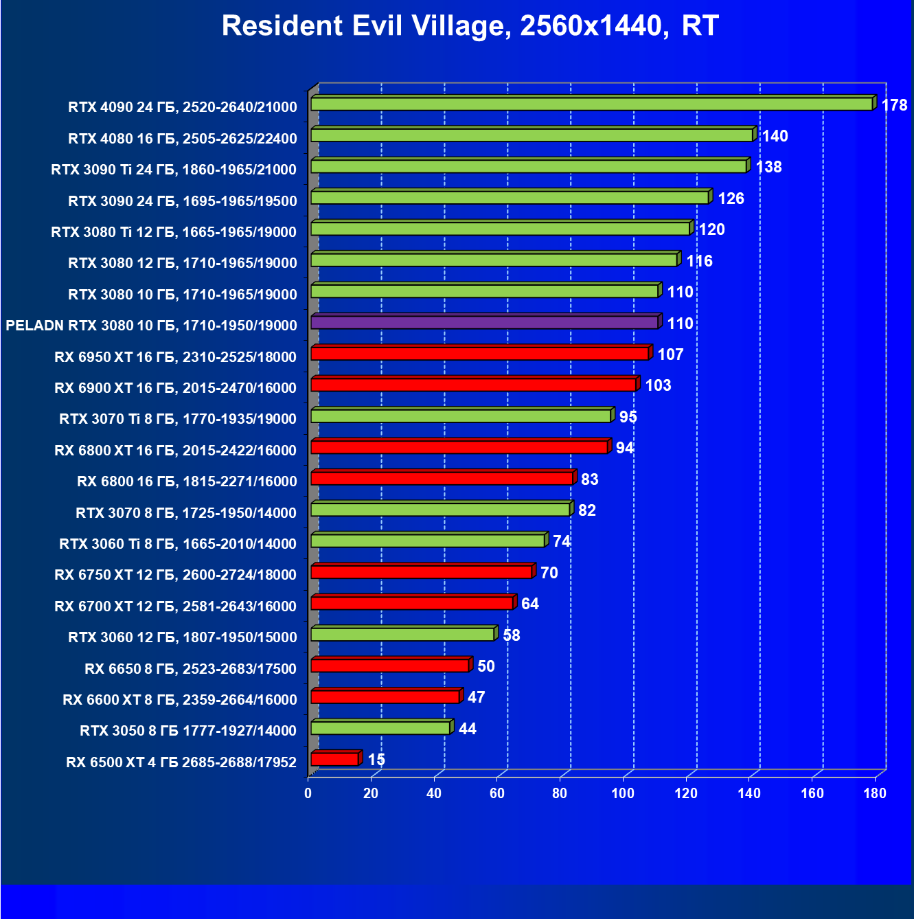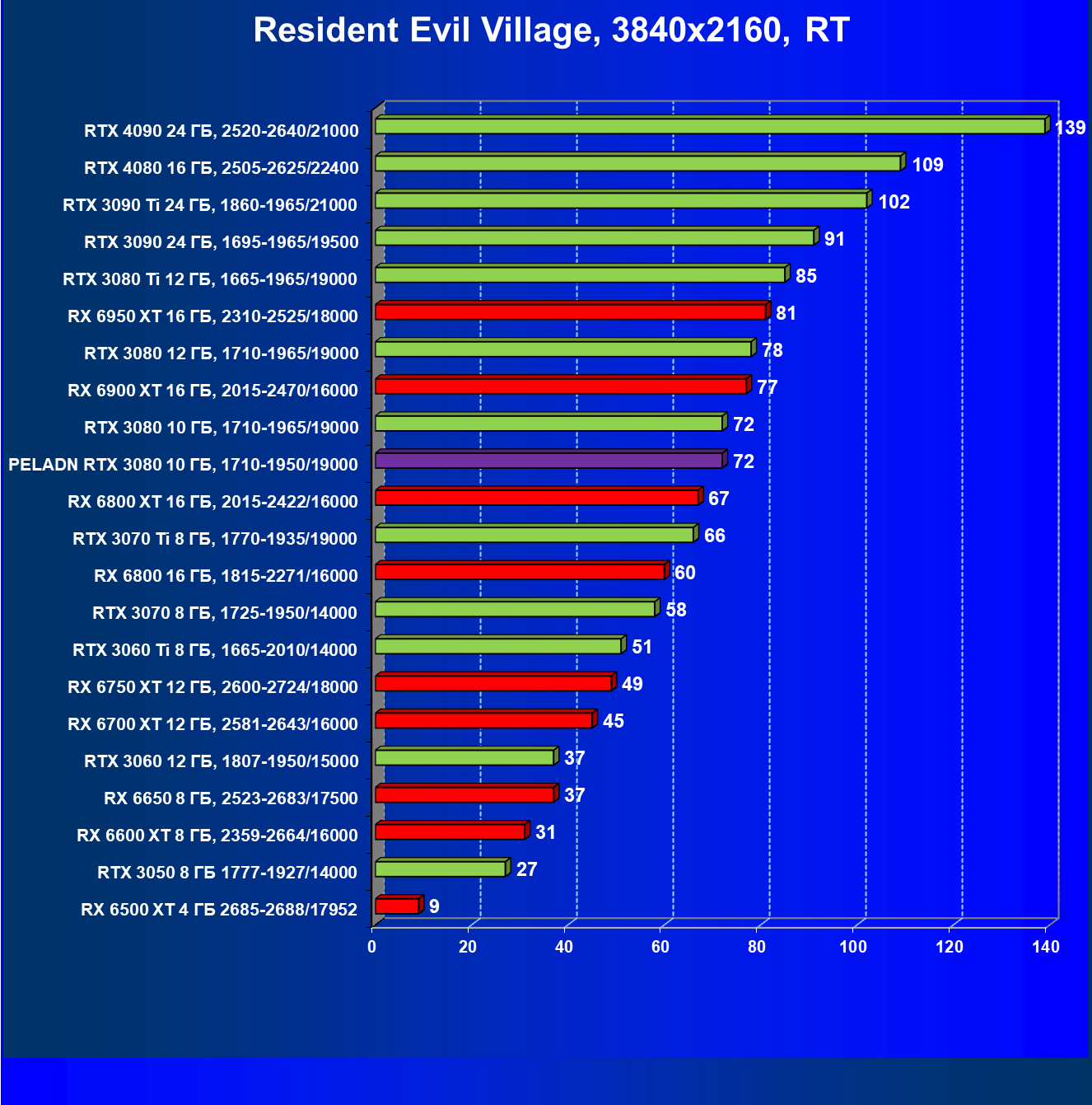 В играх с RT карта Peladn выигрывает еще больше в сравнении с семейством Radeon, что позволяет ей выглядеть весьма выгодным вариантом для приобретения.