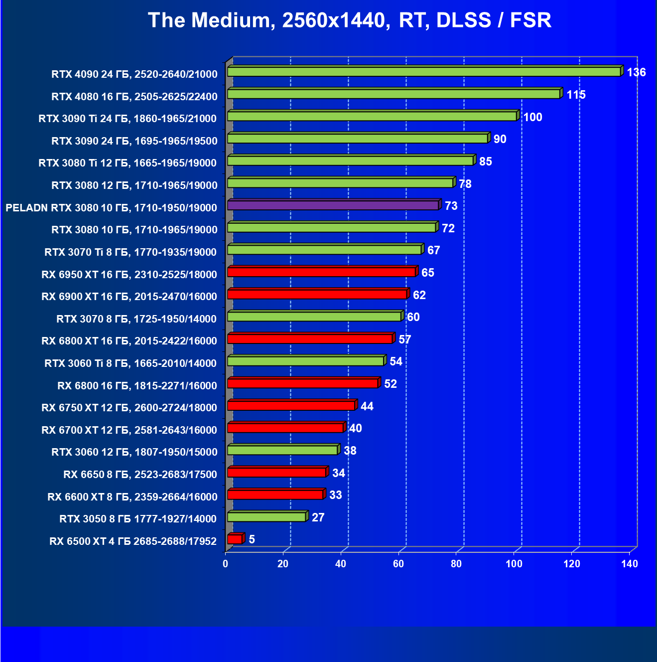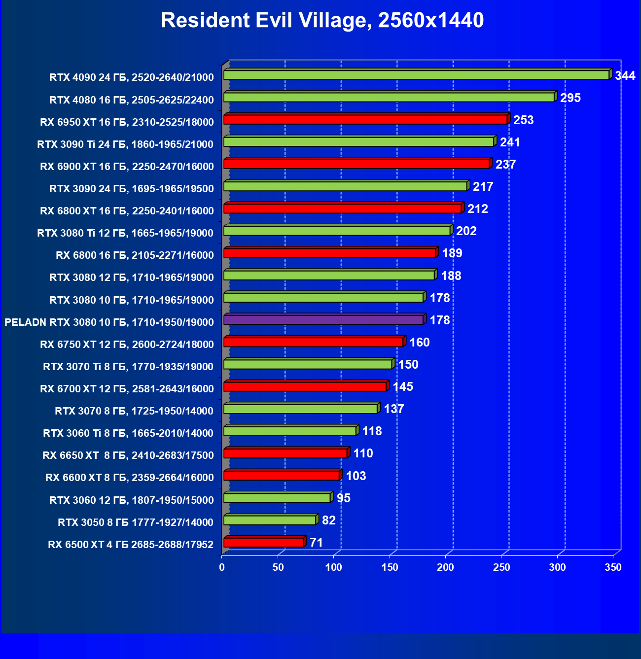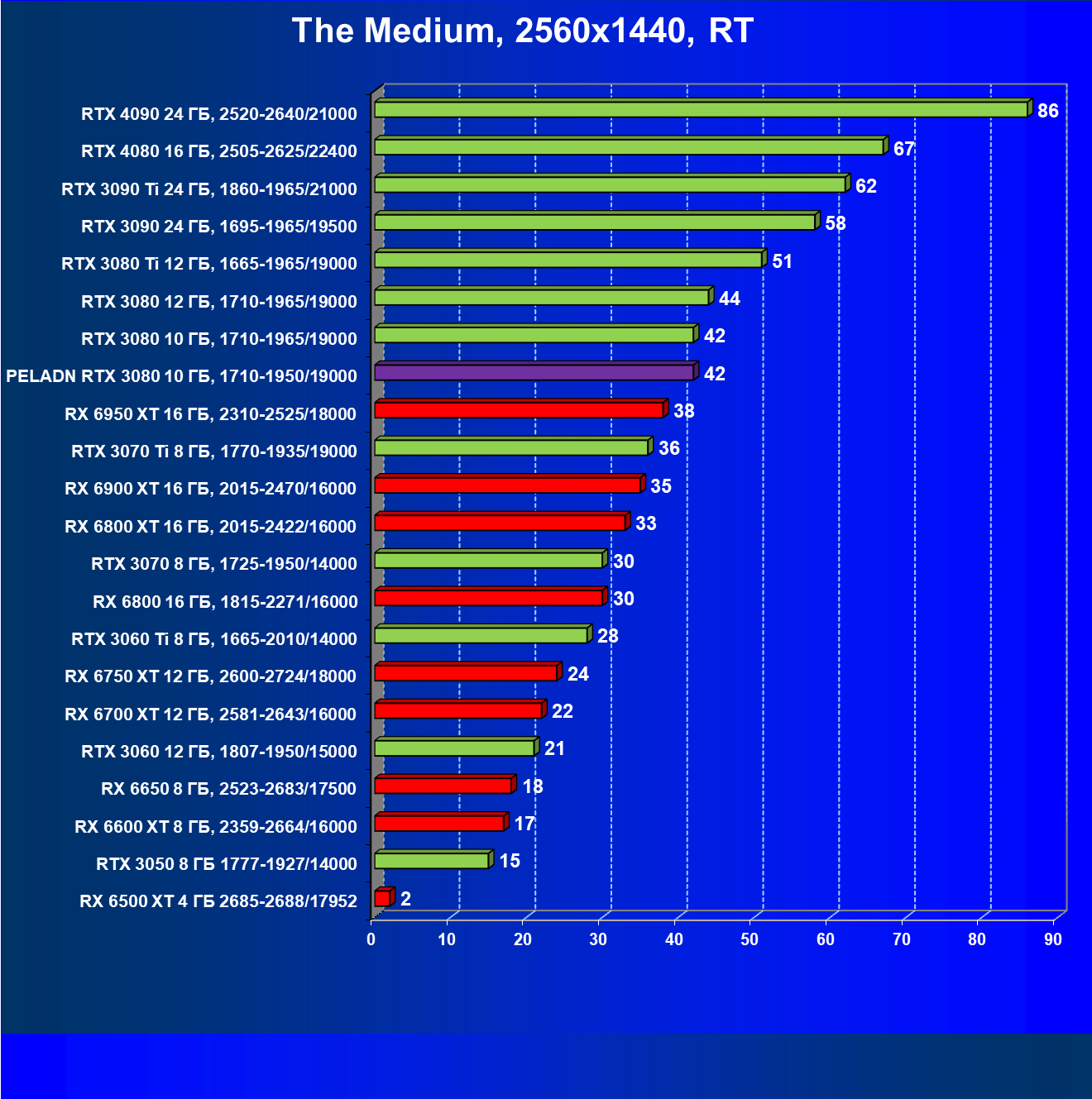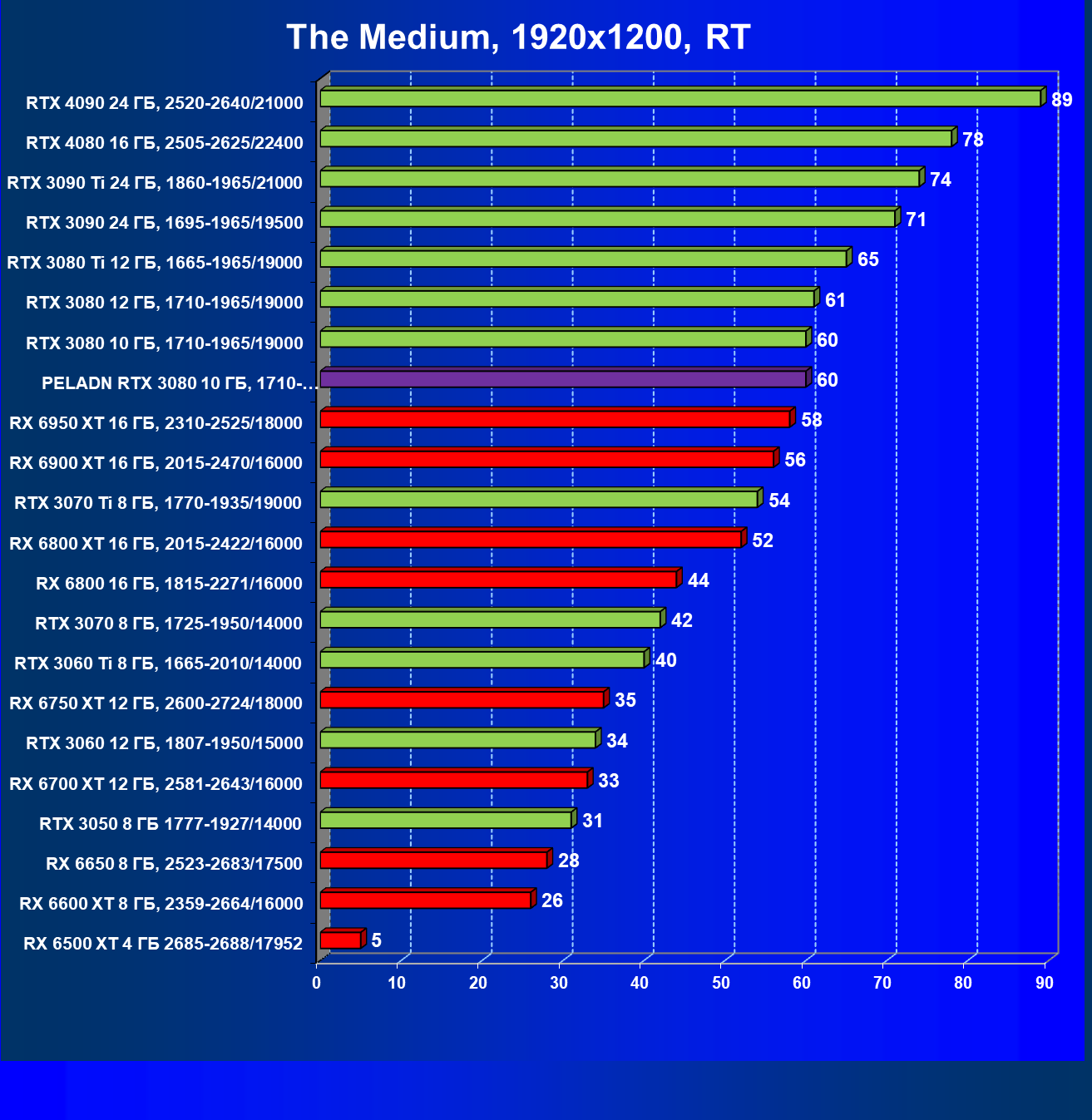 В играх с RT карта Peladn выигрывает еще больше в сравнении с семейством Radeon, что позволяет ей выглядеть весьма выгодным вариантом для приобретения.