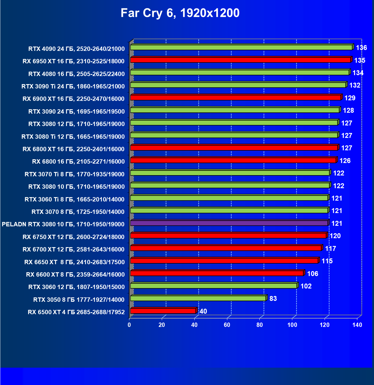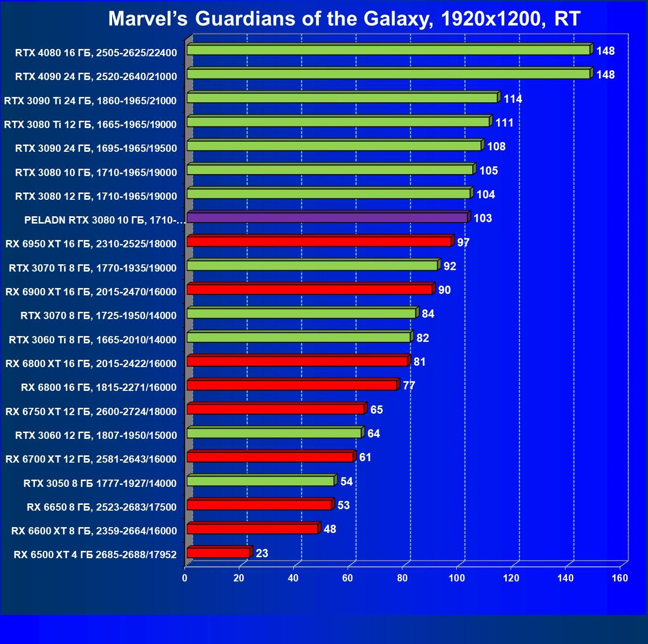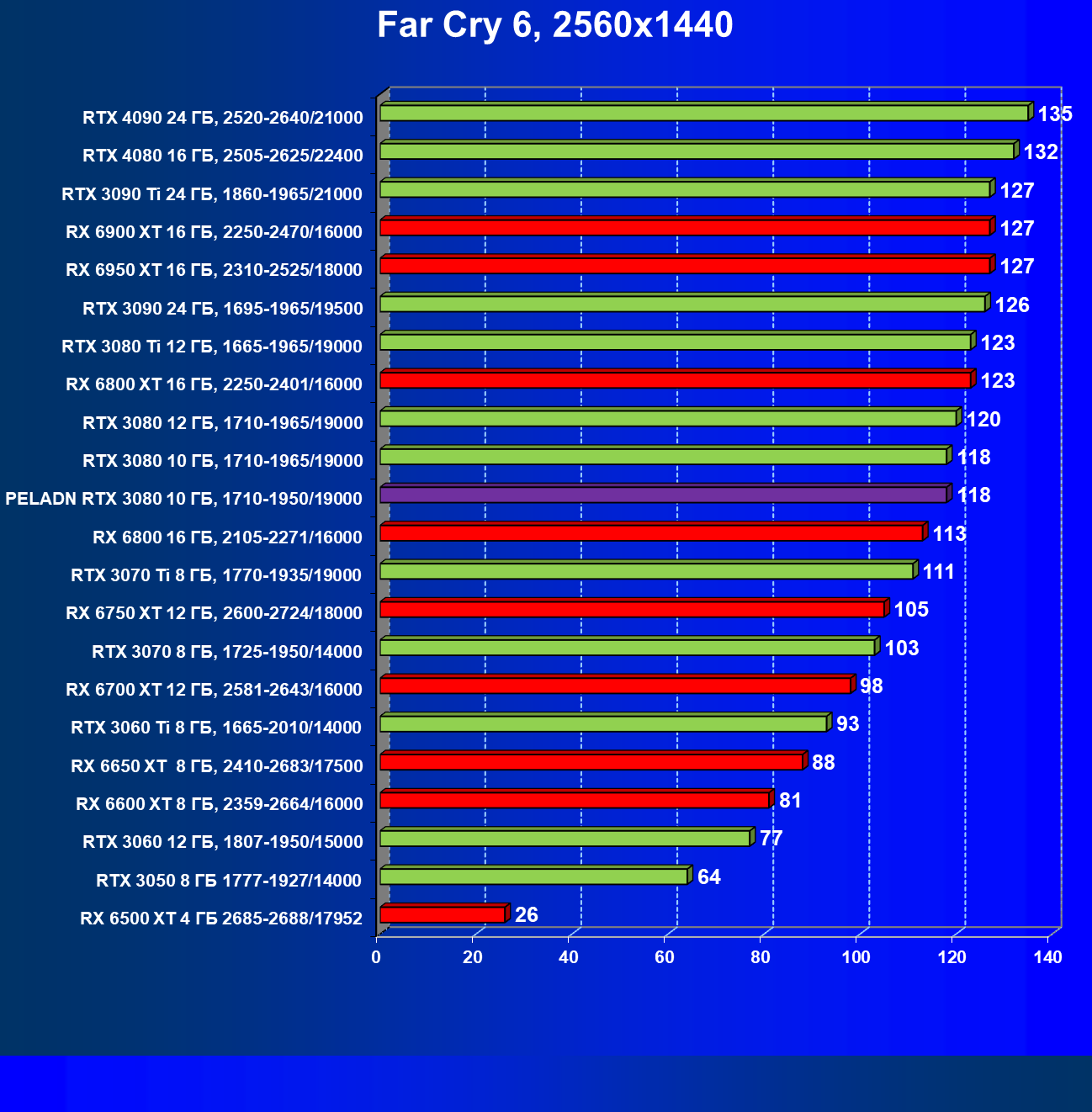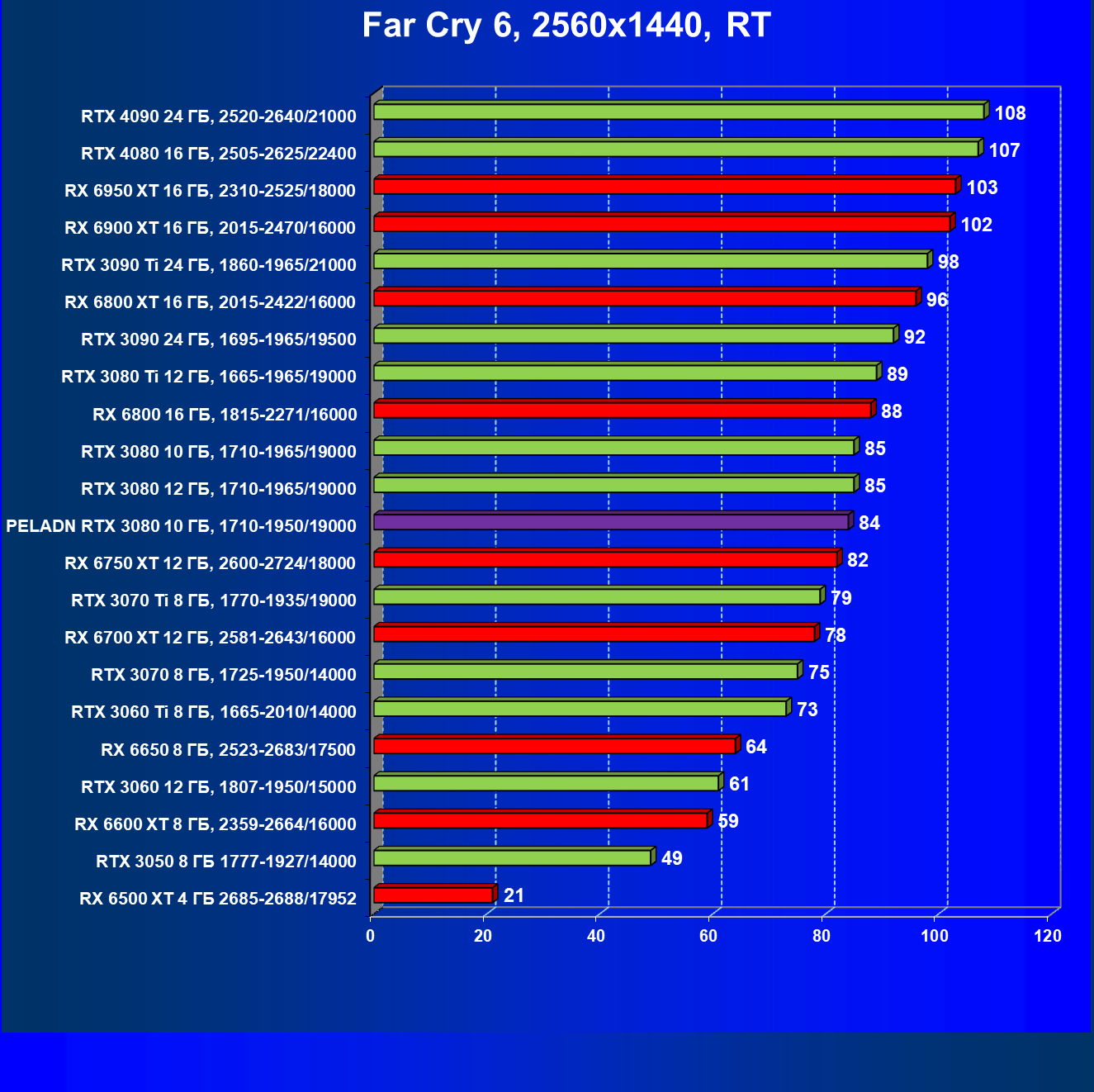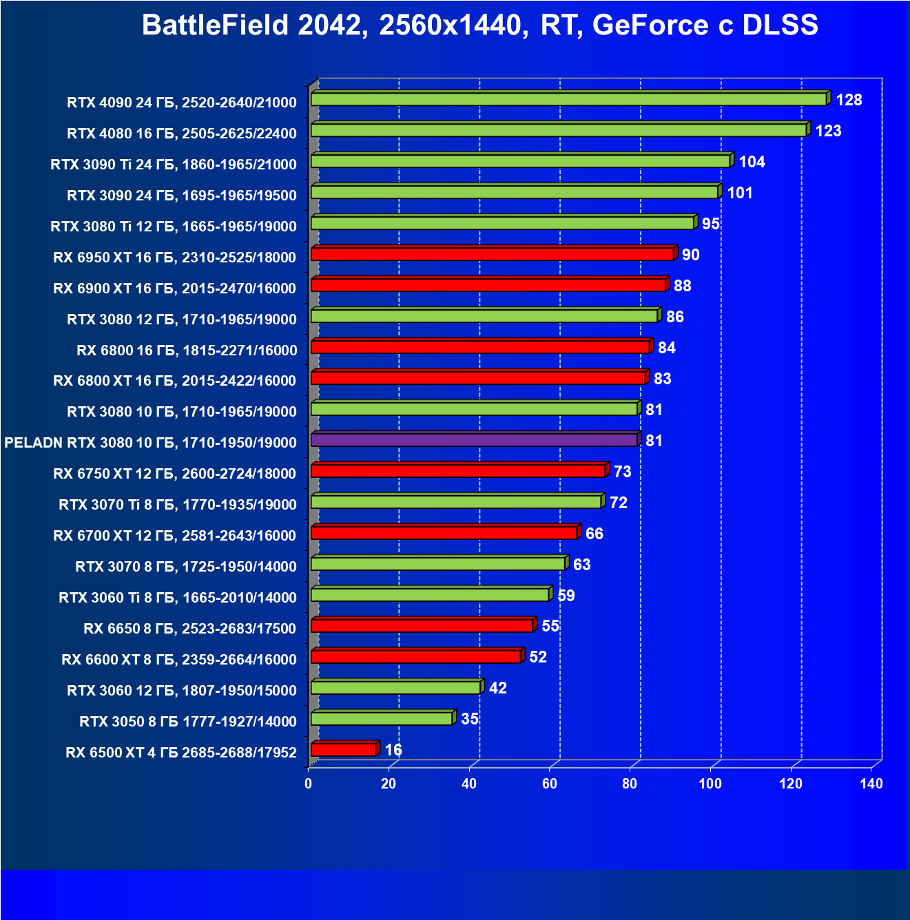 В играх с RT карта Peladn выигрывает еще больше в сравнении с семейством Radeon, что позволяет ей выглядеть весьма выгодным вариантом для приобретения.