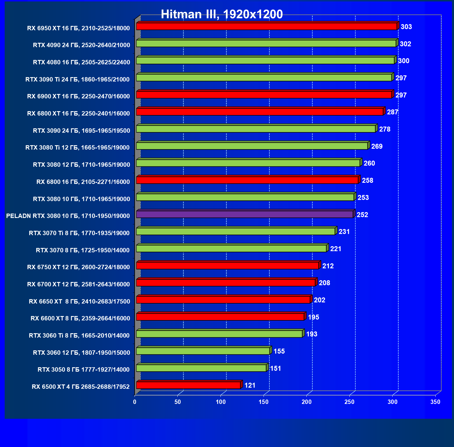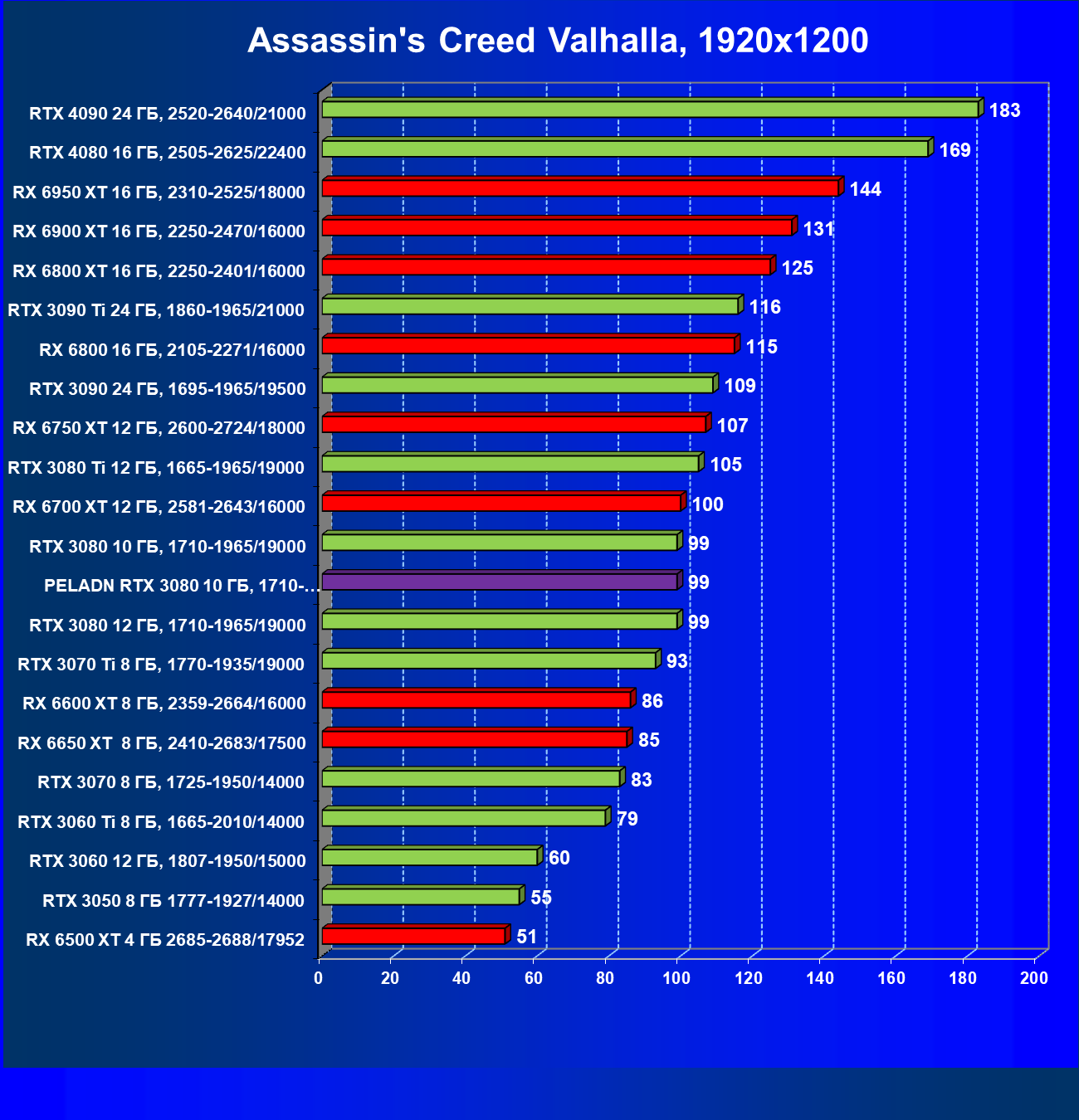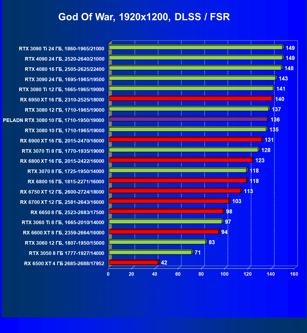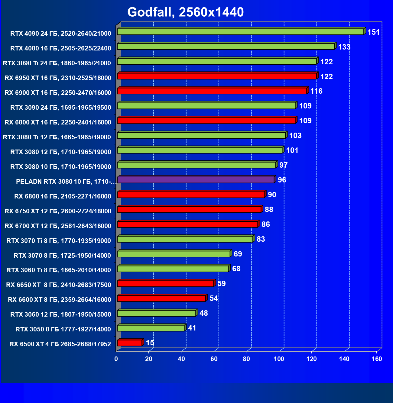 Ускоритель Peladn GeForce RTX 3080 (10 ГБ) близок по производительности к сопернику в лице AMD Radeon RX 6800 XT, оба они нацелены на разрешение 4K при максимальном качестве графики в играх без трассировки лучей. При этом эффективность DLSS выше, чем FSR, поэтому в играх с RT+DLSS производительность RTX 3080 в целом повыше, а цена у рассмотренной нами модели ниже, чем у RX 6800 XT.