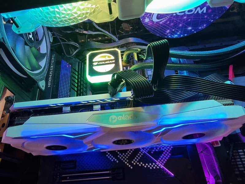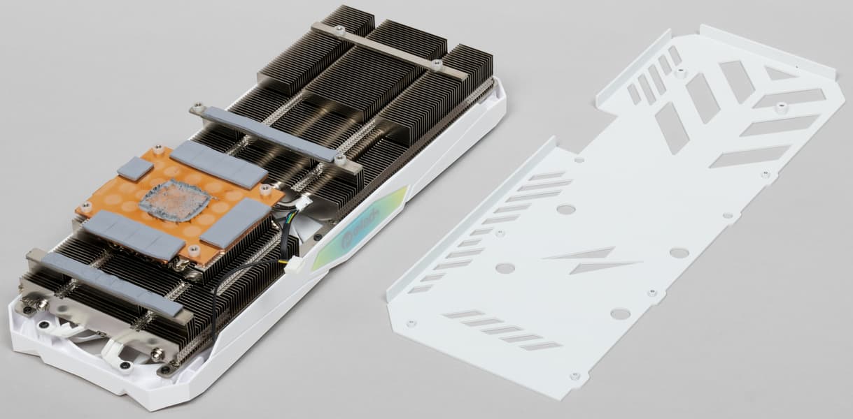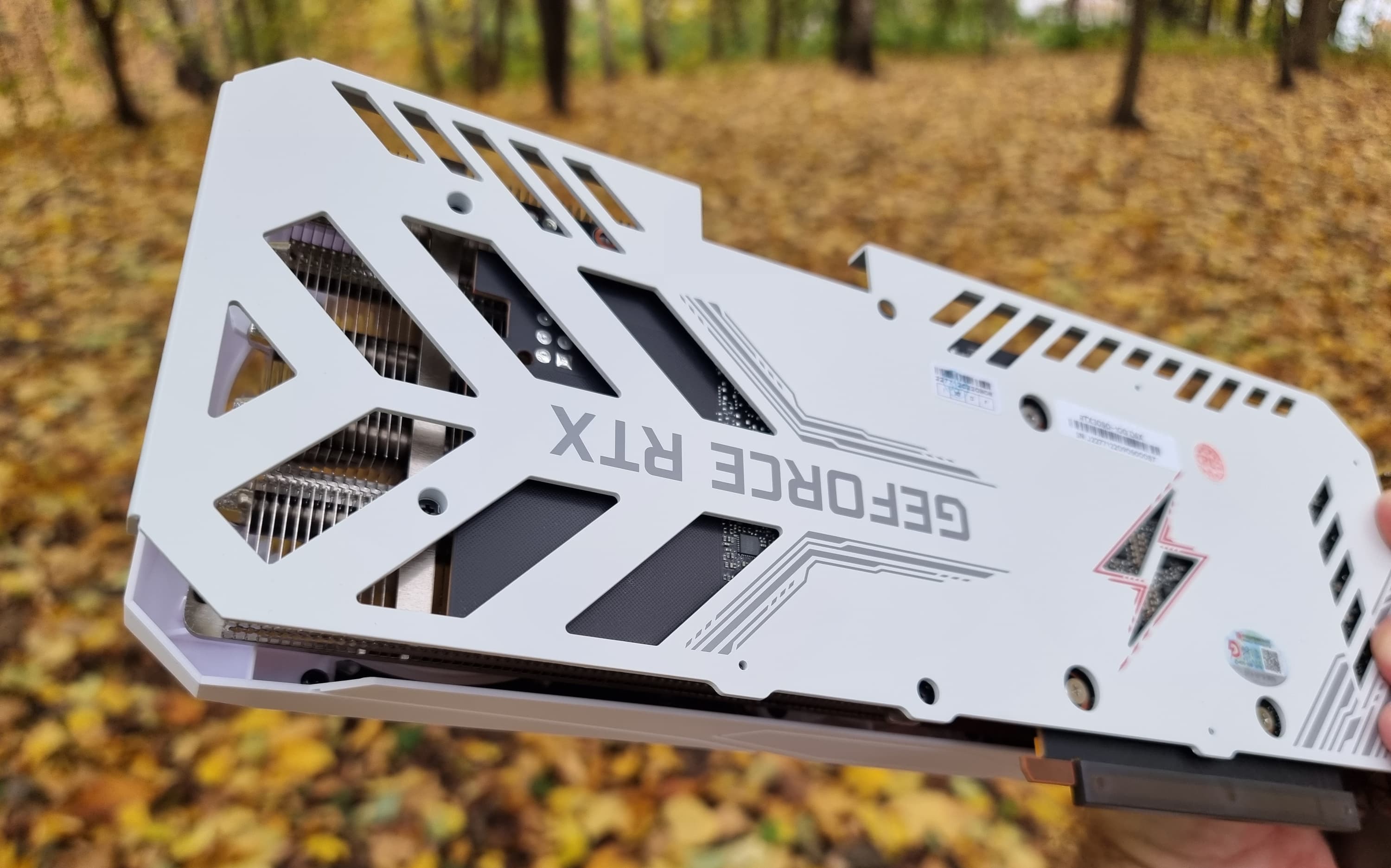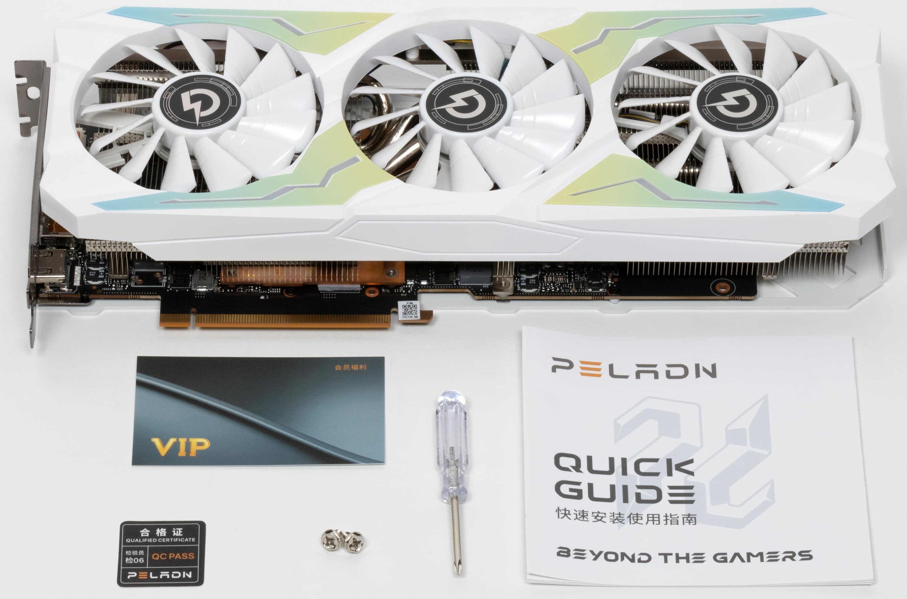 Карта имеет стандартный набор видеовыходов (3 DP 1.4a и 1 HDMI 2.1) и два разъема питания (8-контактных) — больше не требуется, так как разогнать ее не получится (да и не стоит). К минусам можно отнести тот факт, что у производителя Peladn нет собственной утилиты для настройки работы видеокарт, в том числе для управления подсветкой.