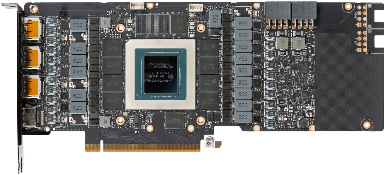 Сразу же обращаем внимание на графическое ядро: чип GA102-202 (с LHR) выпущен в марте этого года, GPU свежий и новый, не перепаянный с какой-то иной карты. То есть нам реально повезло в свете той информации о Peladn, которую мы привели в начале статьи.