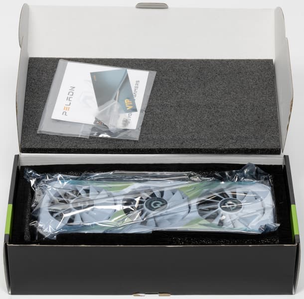 Ручной разгон графического ядра не предоставляется возможным из-за жесткого лимита потребления, но карта и без разгона нагревается до 82 °C по ядру и до 84 °C по памяти. По производительности карта Peladn равна референс-аналогу.