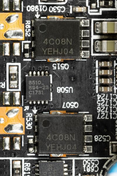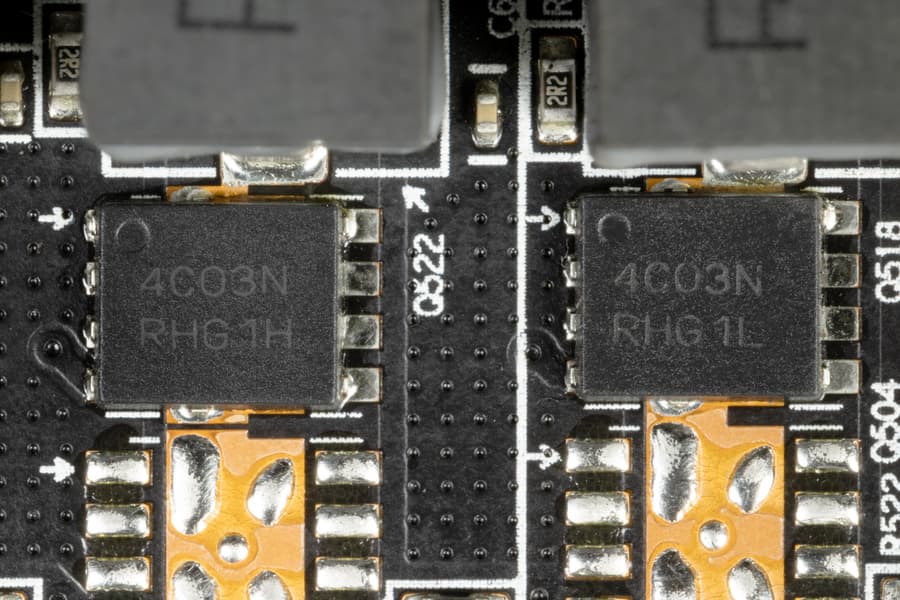 В преобразователе питания карты Powercolor используются наборы мосфетов NTMFS4C03N (On Semiconductor), рассчитанные на максимальный ток 30 А.
