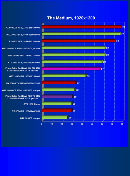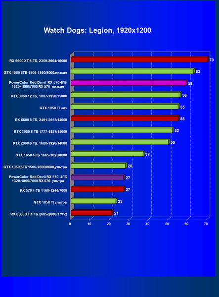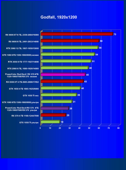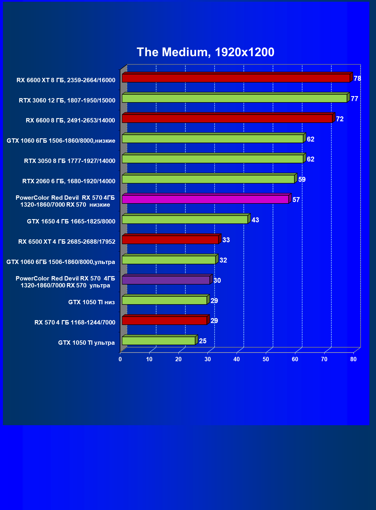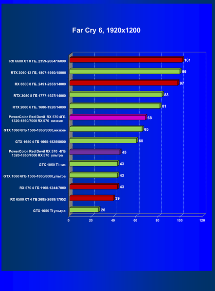 Пояснения: Карты GeForce GTX 1060 6 ГБ, GeForce GTX 1050 Ti 4 ГБ, а также текущую карту Powercolor мы тестировали на ультра- и низких настройках графики, остальные карты — только на ультра (высоких).
