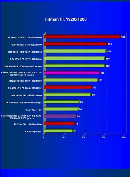 | GTX 1060 6 ГБ, 1506—1860/8000 | 157 | 48 | 33 000 |