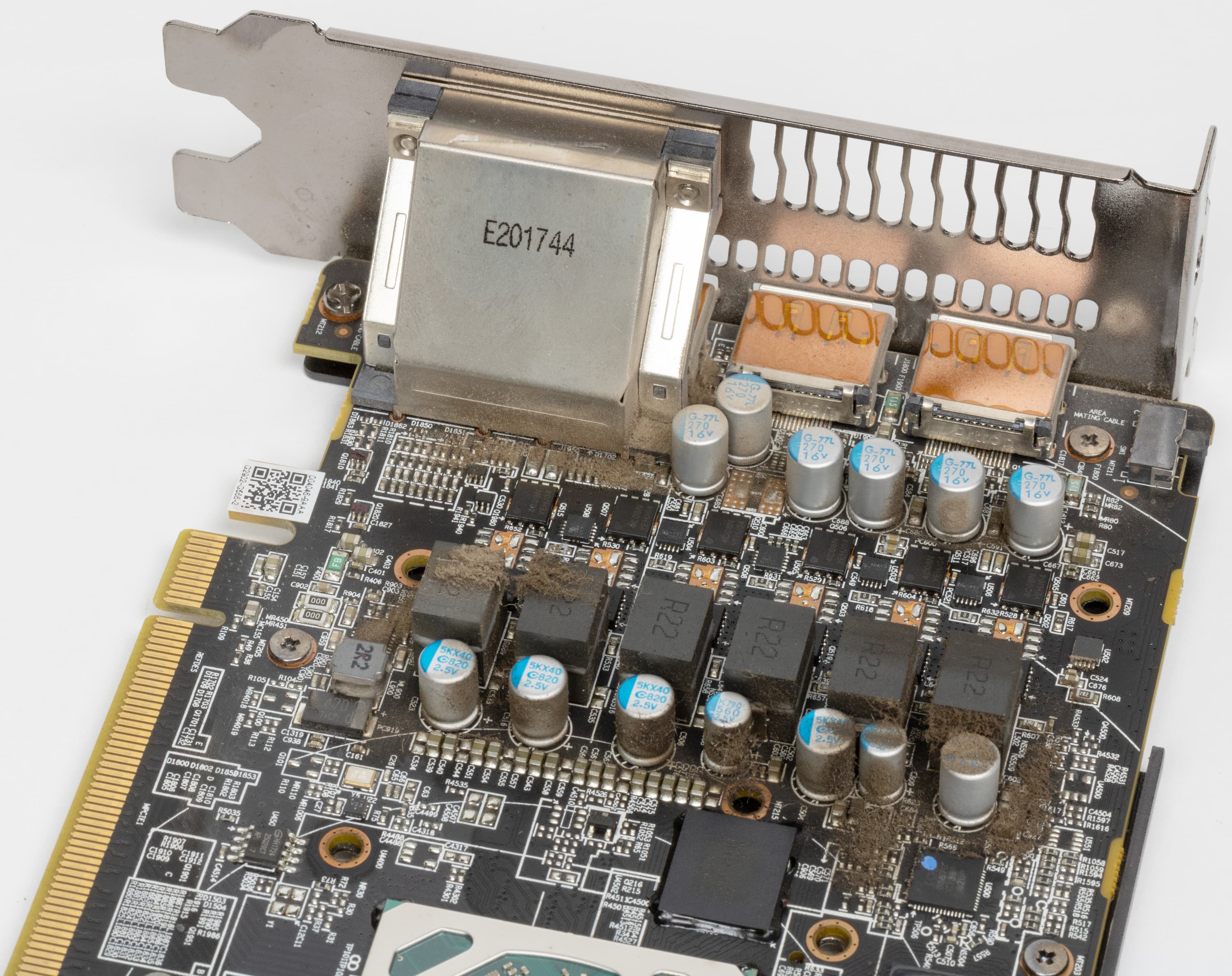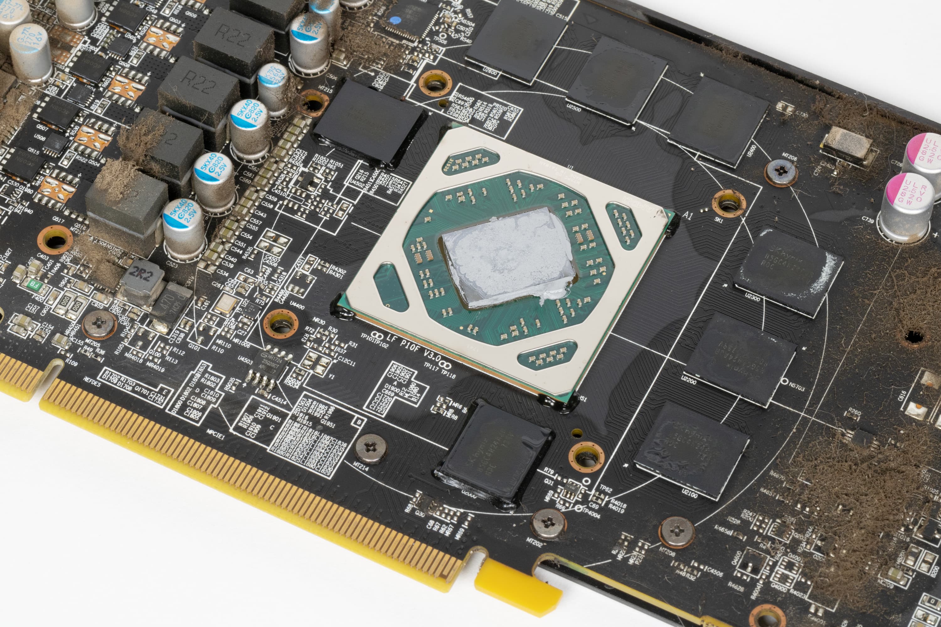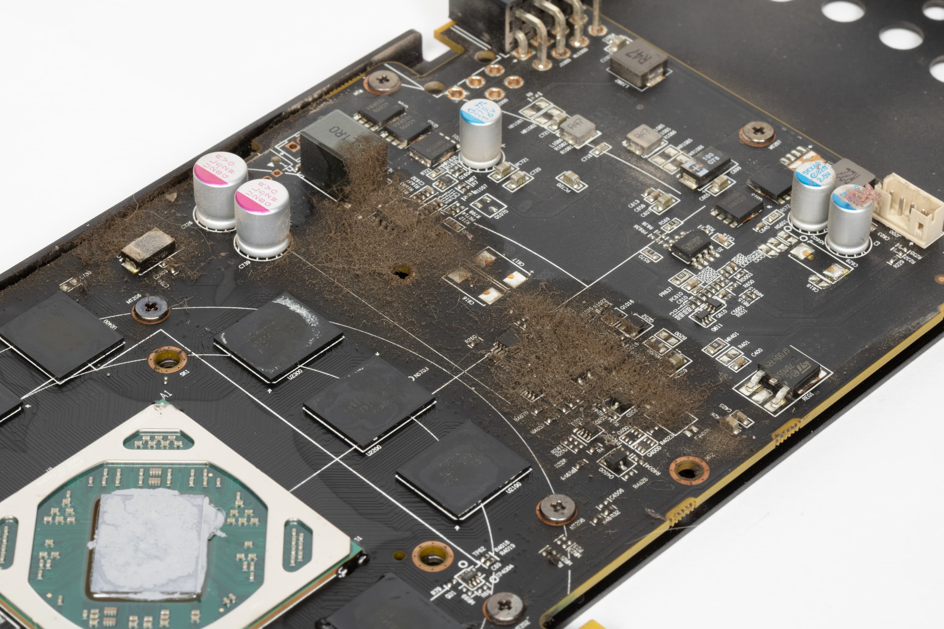Специально вставляю как можно больше фотографий карты, какой она к нам попала, чтобы детально ощутить, как выглядит карта после плотного майнинга без остановки в течение трех лет. Наверно, карта окупила себя раз в 50. В 2017 году появился сам Radeon RX 570, а вот когда была куплена данная карта, — неизвестно. Также неизвестно, в каких условиях она работала. Новая такая карта в то время стоила в районе 33 тысяч рублей, однако тогда доходность от майнинга резко взлетела, и все карты сметались с прилавков. После окончания бума, когда доходность от майнинга стала весьма небольшой, и в дальнейшем цена таких карт падала до 14 тысяч рублей (а на вторичном рынке вообще до 5—8 тысяч рублей). Сейчас, конечно же, можно найти по сути только б/у аналоги за ± 22 тысячи, и то такая цена обусловлена общим подорожанием всех компонентов ПК, а также недавним дефицитом видеокарт в целом. Сейчас именно такую карту найти сложно, ну по сути редкая «монетка», собственно.