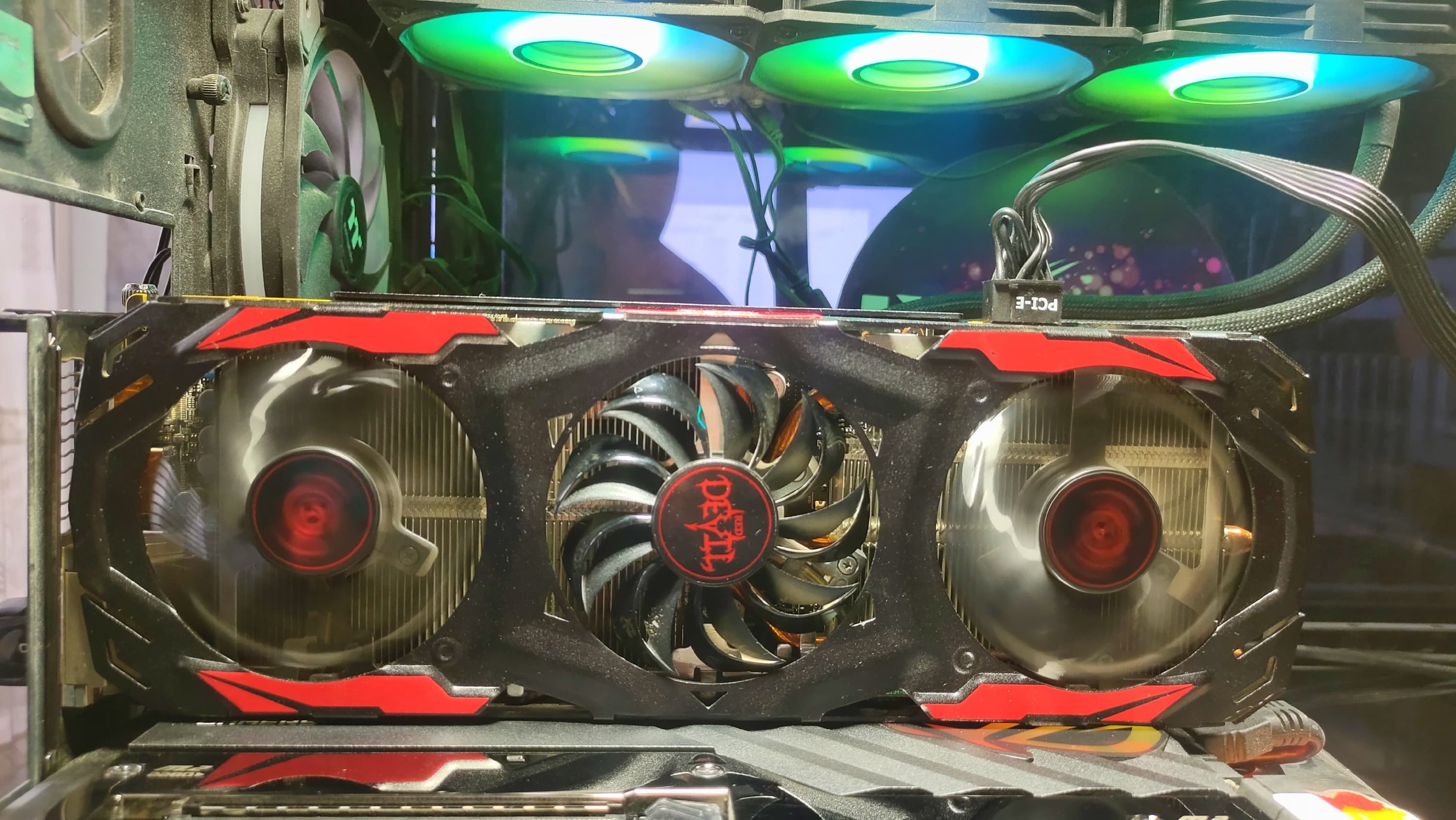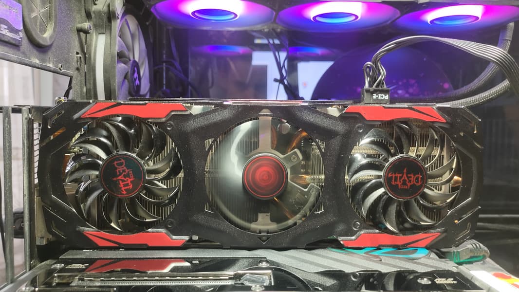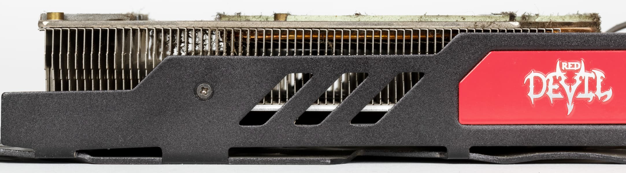 Видеокарты под брендом Powercolor известны в России. У производителя ярко выраженные «адово»- стильные модели, которые по-своему уникальны. Стоит снова сказать, что обозреваемая нами видеокарта ни разу за весь период эксплуатации не вскрывалась, что и вызывает жадный интерес — в каком состоянии микросхемы и сама печатная плата. На практике уже известно, что видеокарты, продолжительно использующиеся в майнинге, время от времени попадают в руки ремонтников из-за перегорания контроллеров, транзисторов или микросхем памяти, а также теплоотводные прокладки могут плавиться и уже не обеспечивать свою функциональность. Парни — майнеры лечат карты, и снова в бой, если же конечно, карты не пришли совсем в негодность. Те, кто приобрели подобные модели в 2017, помайнили и сейчас их продают, — отдельные красавчики, так сказать, произвели крутое и выгодное «инвестирование в железо».