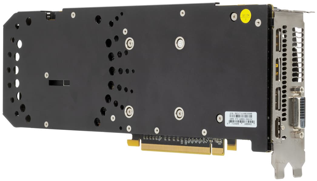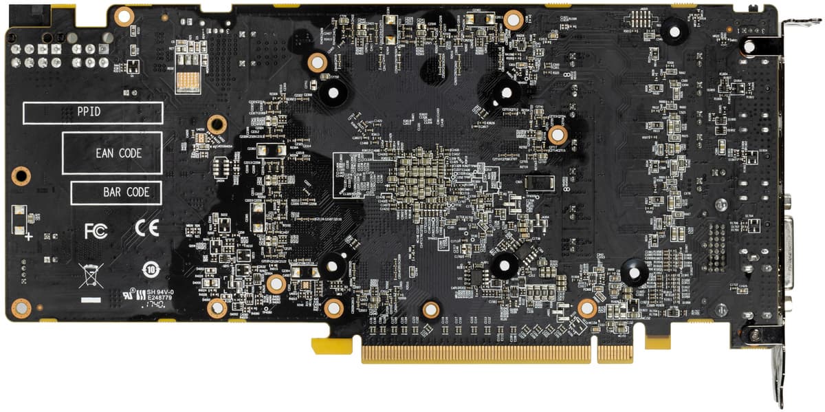 Карта имеет 4 ГБ памяти GDDR5 SDRAM, размещенной в 8 микросхемах по 4 Гбит на лицевой стороне PCB. Микросхемы памяти SK Hynix (GDDR5, ROC) рассчитаны на условную номинальную частоту работы в 1750 (7000) МГц. Шина обмена с памятью 8×32=256 бит.