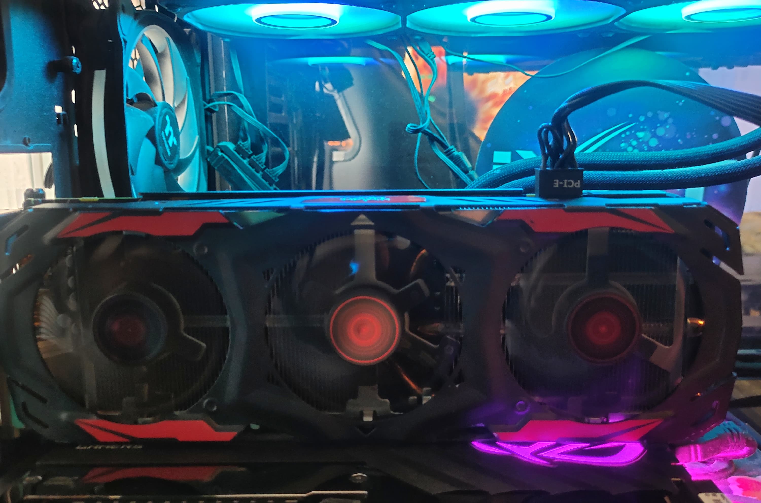 Охлаждение справляется «на ура», напомню, что за все время использования карты она ни разу не вскрывалась для замены прокладок, микросхем, версий PCIe, гнезд вывода и т.д. )), и по-прежнему в СО отлично работает каждый вентилятор, и при этом частоты работы карты неизменно стабильны, то есть в целом карта выдает по сути ту же производительность в играх, что и ее совершенно новый аналог.
