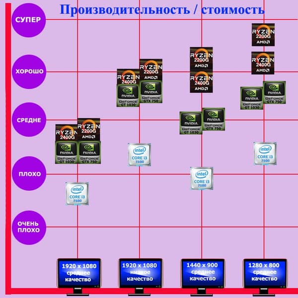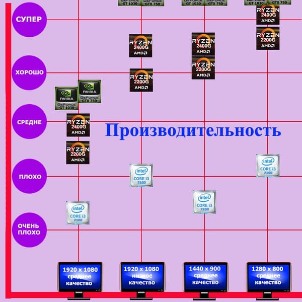 Полные и детальные выводы «c FPS в числах» можно прочитать, прокрутив статью дальше, но многим интересно сразу узнать основные итоги. Поэтому мы демонстрируем производительность наших конфигов в картинках, оценив их согласно нашему субъективному мнению по шкале с пятью градациями:
