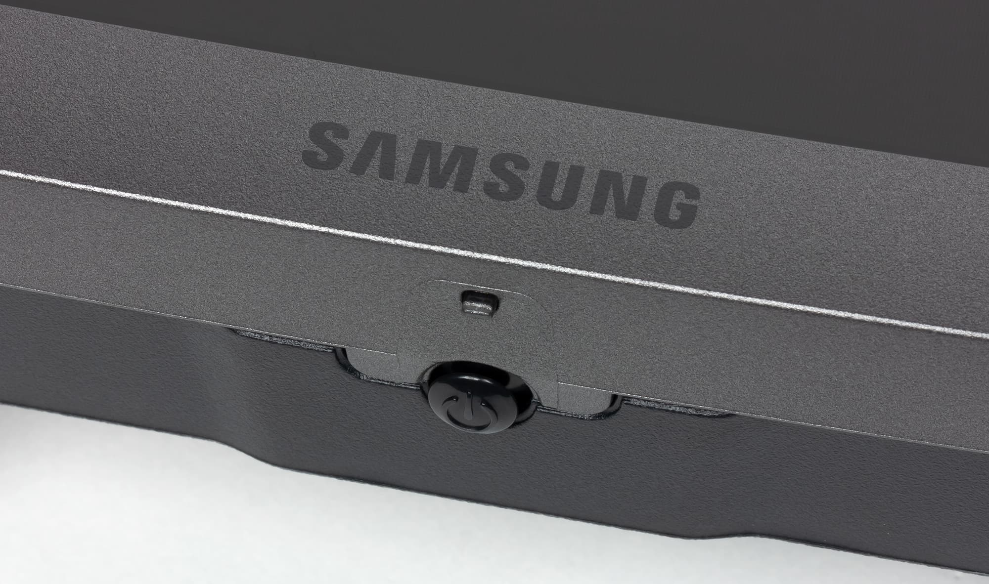 Панели корпуса блока экрана, а также кожух основания подставки и стойка подставки изготовлены из черного пластика в основном с матовой поверхностью. Большая часть площади задней панели имеет мелкий рельефный узор. Внешняя поверхность матрицы черная, полуматовая. Экран выглядит как монолитная изогнутая поверхность, ограниченная снизу планкой из пластика с темно-серым серебристым покрытием, а сверху и с боков — узкой пластиковой окантовкой. Выведя изображение на экран, можно увидеть, что на самом деле между внешними границами экрана и собственно областью отображения есть неширокие поля. Плоскость экрана изогнута по цилиндру так, что правый и левый край немного выдвинуты вперед. Заявленный радиус изгиба равен 1,5 м. Равномерность изгиба более-менее равномерная, за исключением того, что на расстоянии порядка 10 см от правого и левого края экран уже практически плоский.