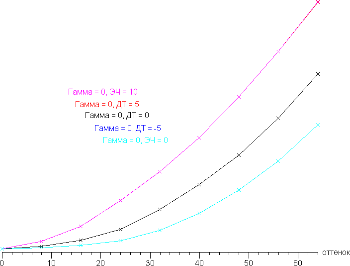 При необходимости гамма-кривую можно изменить, выбирая для настройки Гамма другие значения.