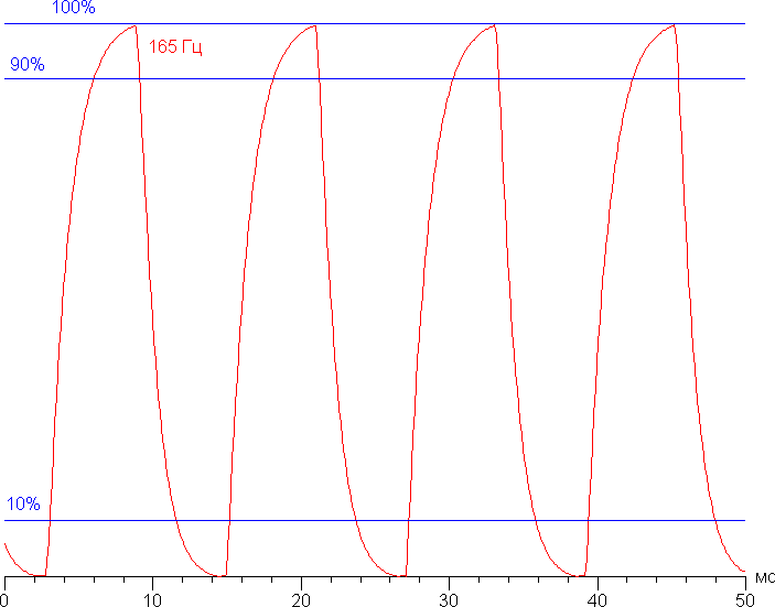 Видно, что при 165 Гц чередования максимальная яркость белого кадра гораздо выше уровня 90% белого, а минимальная яркость черного кадра практически равна черному в статике. Амплитуда изменения яркости значительно выше 80% от уровня белого. То есть согласно этому формальному критерию скорости матрицы достаточно для вывода изображения с кадровой частотой 165 Гц.