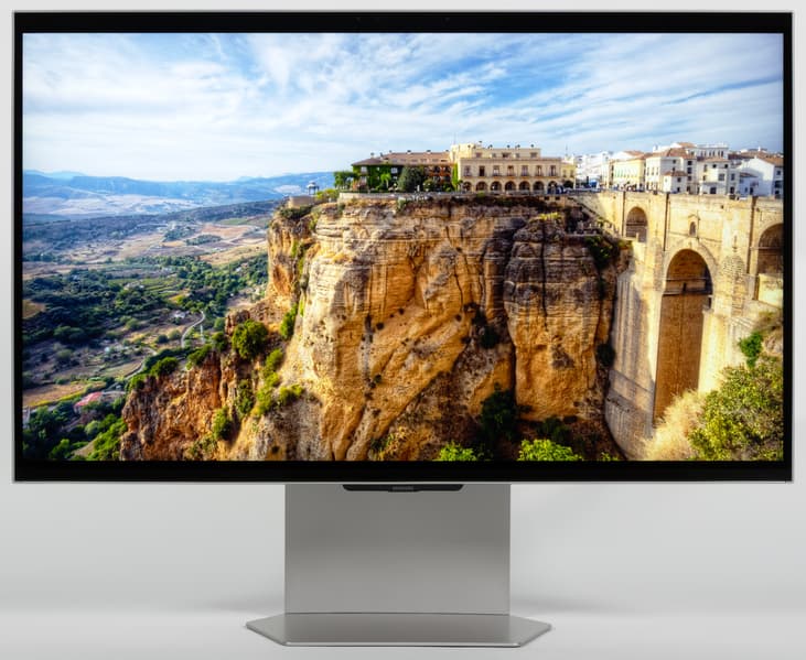 Выше мы представили результаты тестирования Samsung Odyssey 3D G90XF как обычного игрового монитора на матрице типа IPS. Можно сделать вывод о том, что перед нами типичный современный игровой монитор высокого класса. Однако главная особенность этого монитора в том, что он поддерживает работу в стереоскопическом режиме (или как обычно его называют маркетологи 3D-режиме). Напомним, что стереоскопическое изображение получается, если для каждого глаза тем или иным способом формируется свое изображение, в котором положение и ракурс предметов различаются в зависимости от того, на каком расстоянии от зрителя этот предмет располагается. В итоге мозг формирует объемную стереоскопическую картинку. Согласно представленным нам материалам, за формирование двух изображений для двух глаз отвечают цилиндрические микролинзы, расположенные перед ЖК-матрицей: