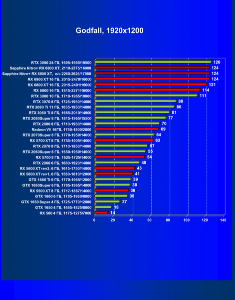 После обновления драйверов (и добавления в наш тестовый набор игры Hitman III) Radeon RX 6800 XT в лице референс-карты стал чуть-чуть опережать GeForce RTX 3080 в среднем, а небольшой фабричный разгон карты Sapphire позволил этой карте в режиме Performance Mode стать лидером своей группы.