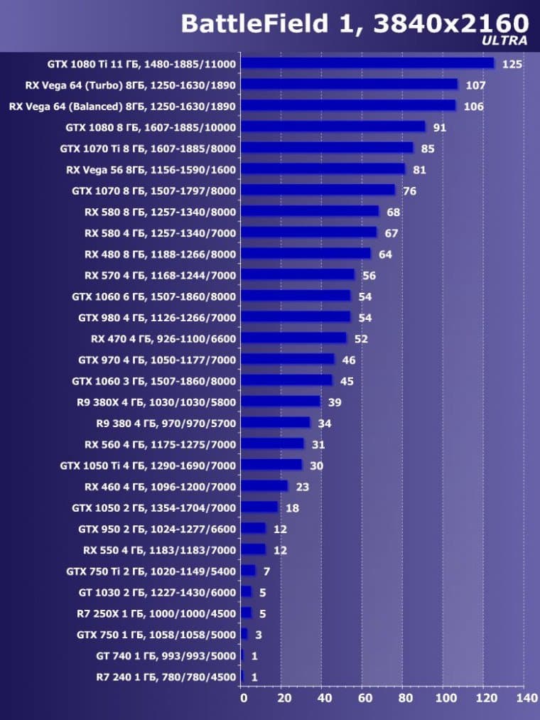 Собственно, мы видим то, что и так хорошо известно: ускоритель RX Vega64 расположился между топовыми продуктами конкурента Nvidia.