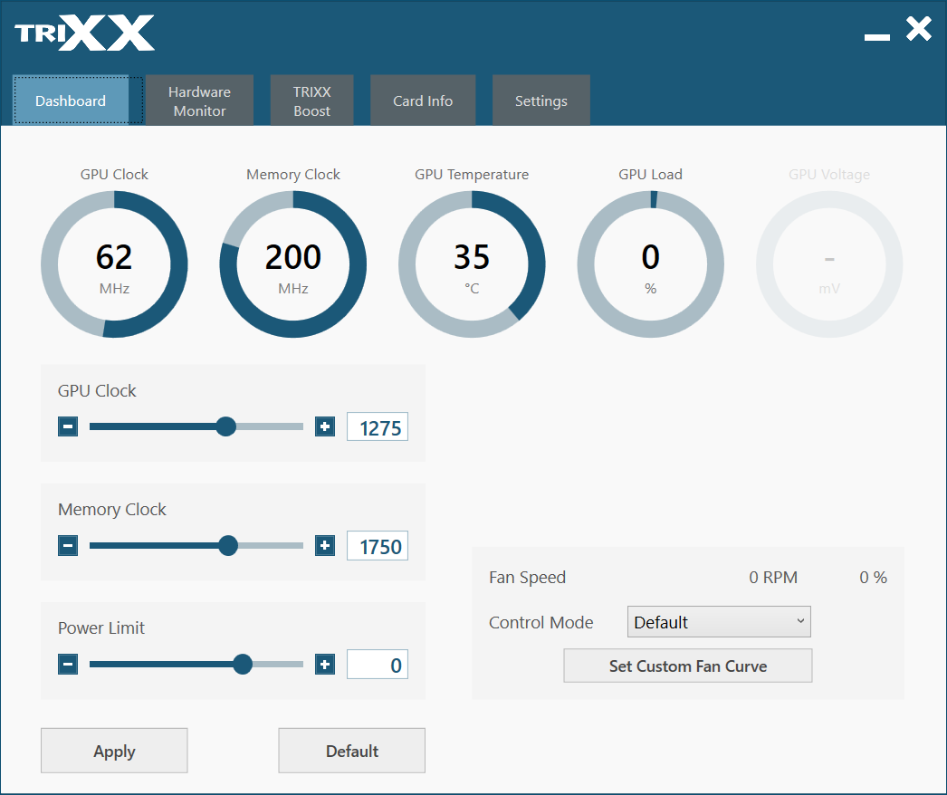 Управление работой карты обеспечивается с помощью фирменной утилиты Sapphire Trixx.