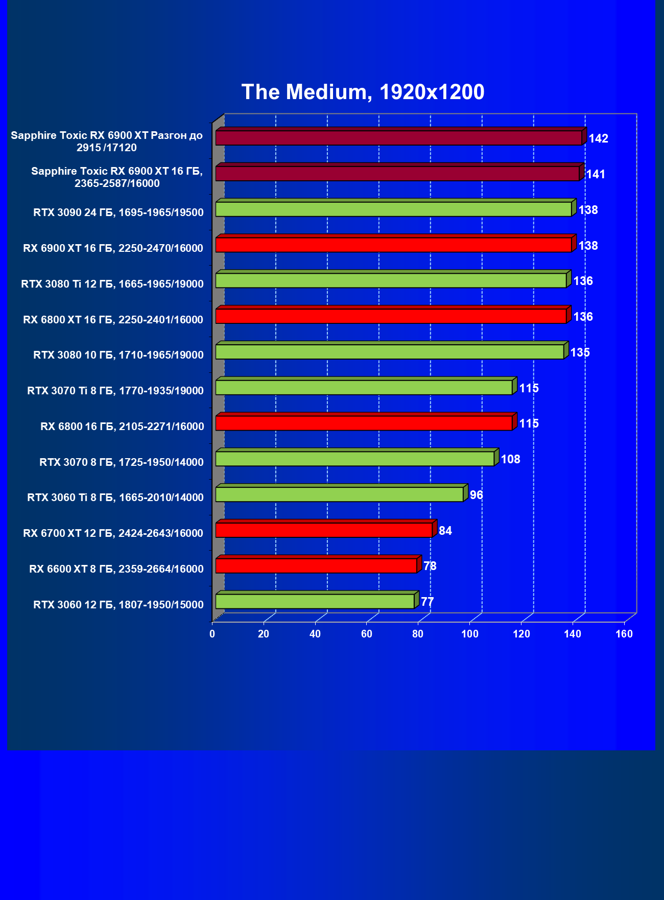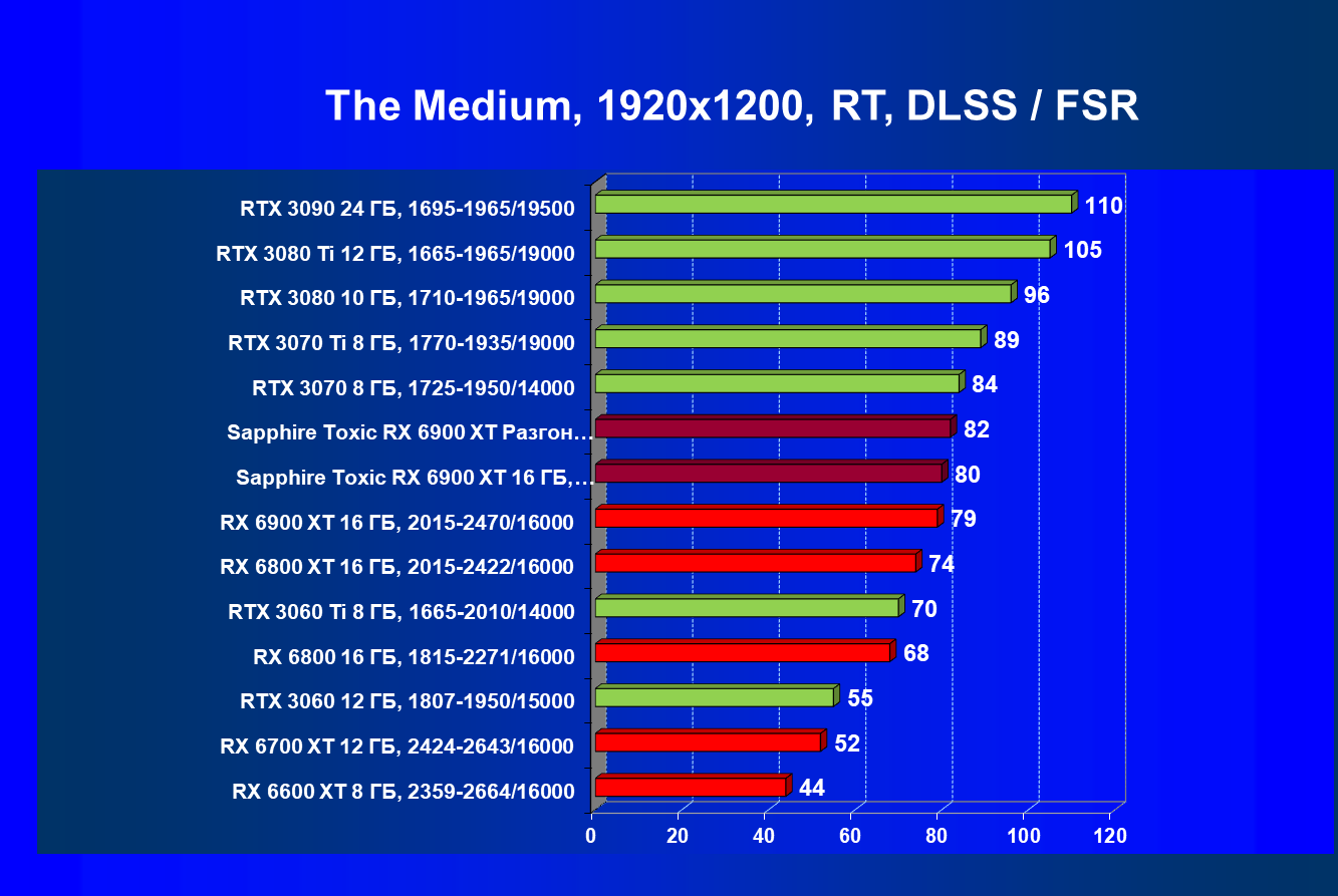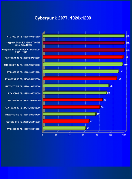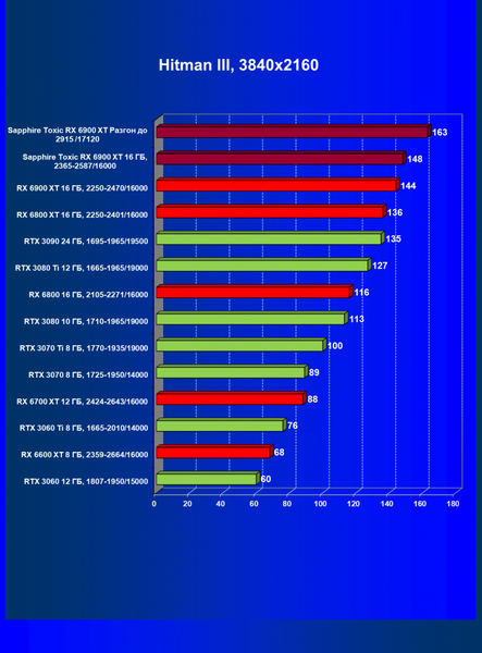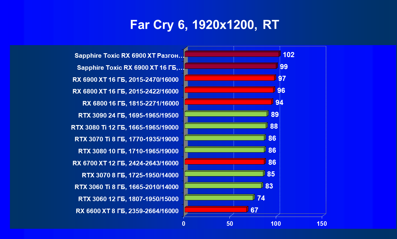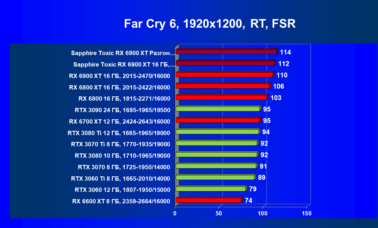 | 07 | RX 6900 XT 16 ГБ, 2015—2470/16000 | 12 | 184 | 158 000 |