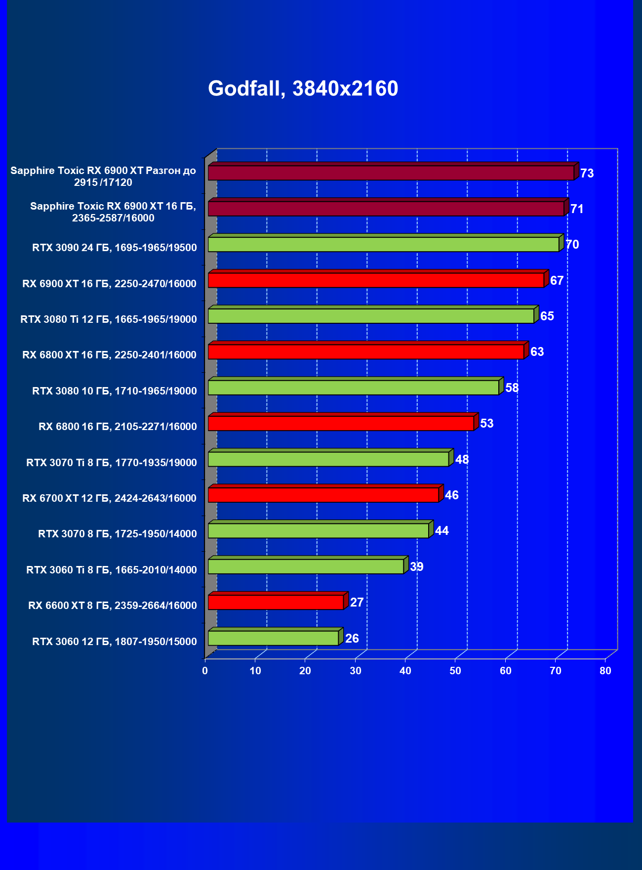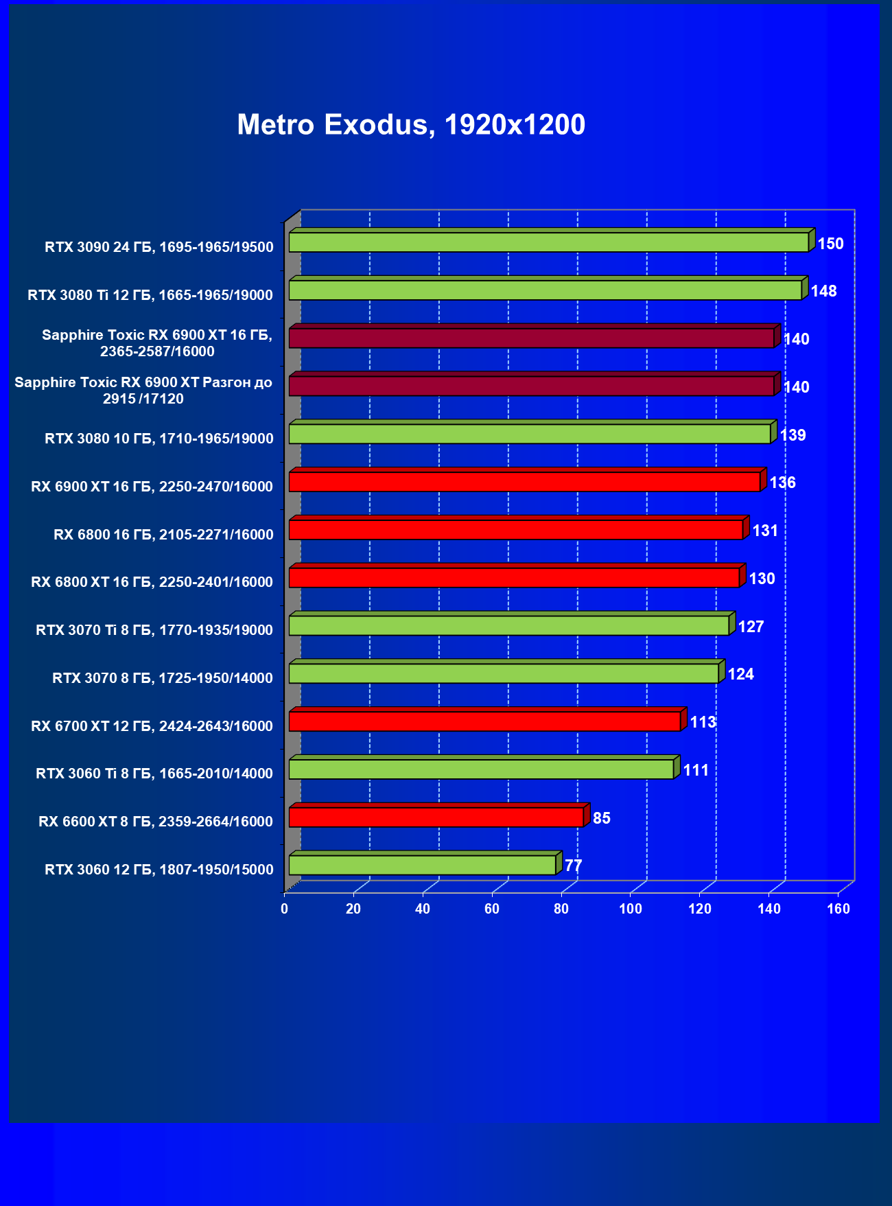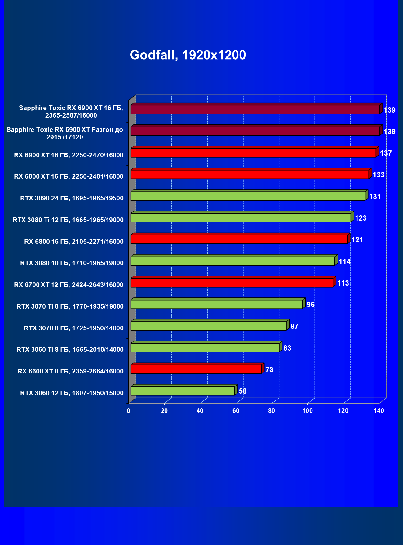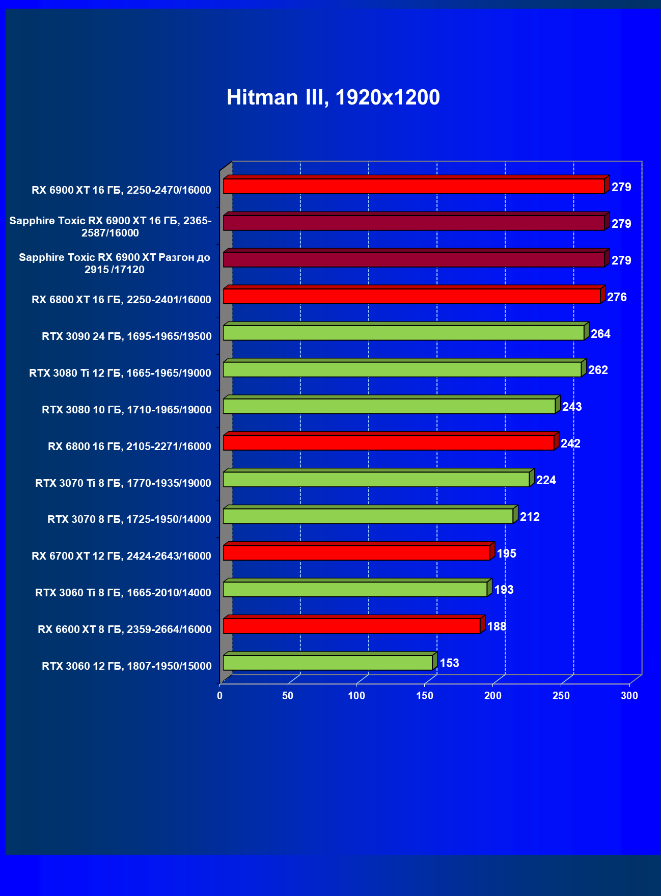 | 07 | RX 6900 XT 16 ГБ, 2015—2470/16000 | 12 | 184 | 158 000 |