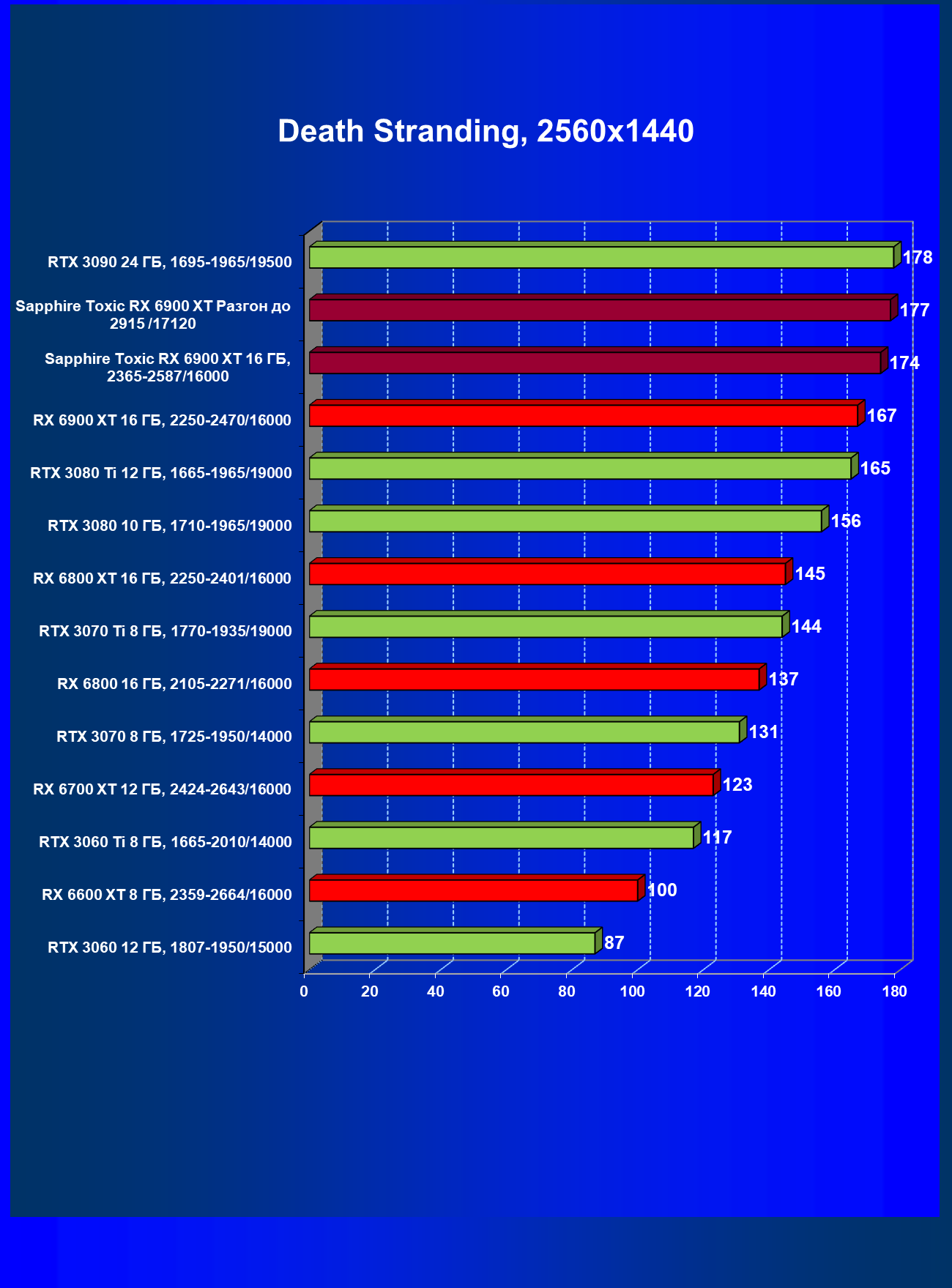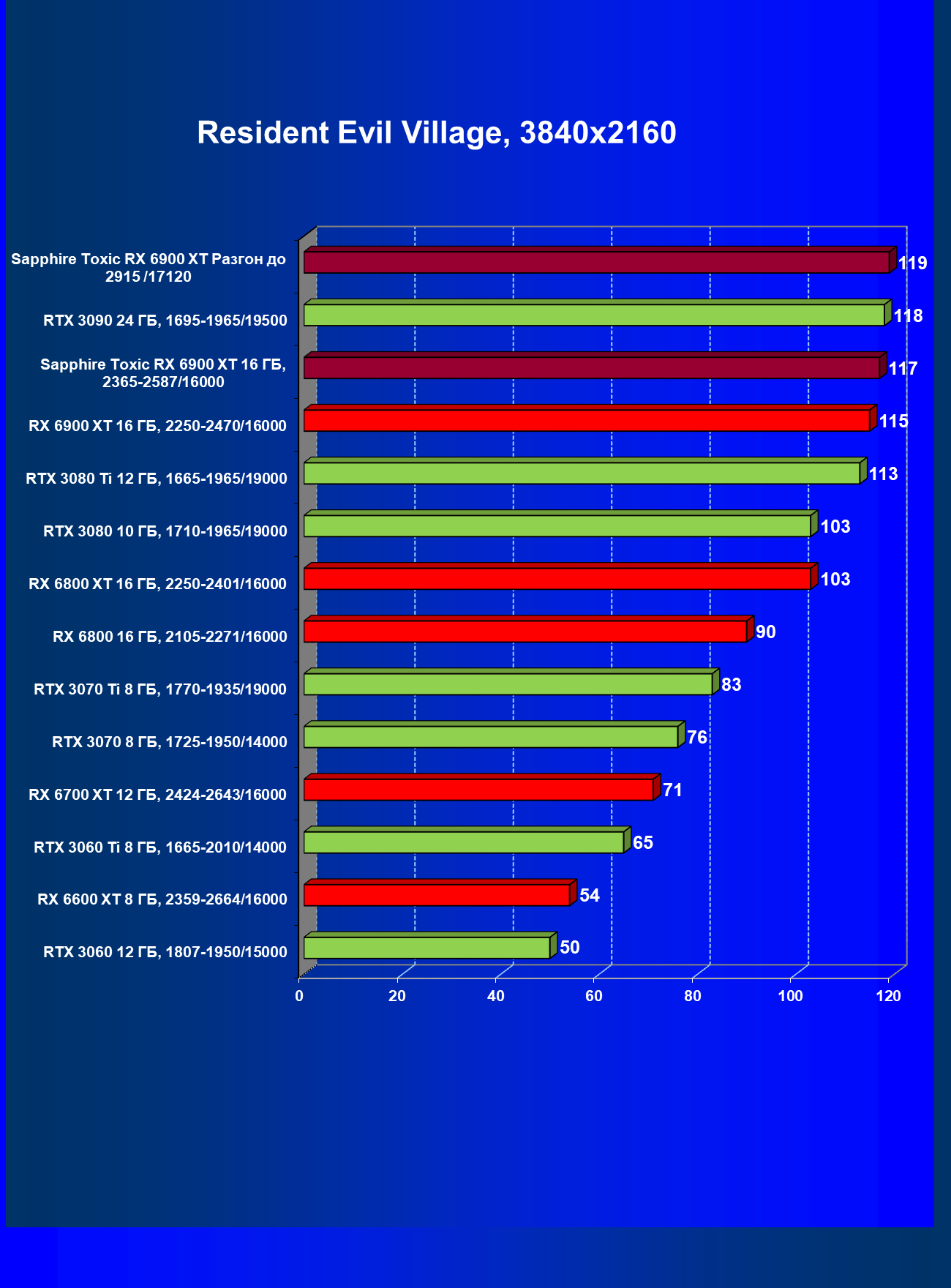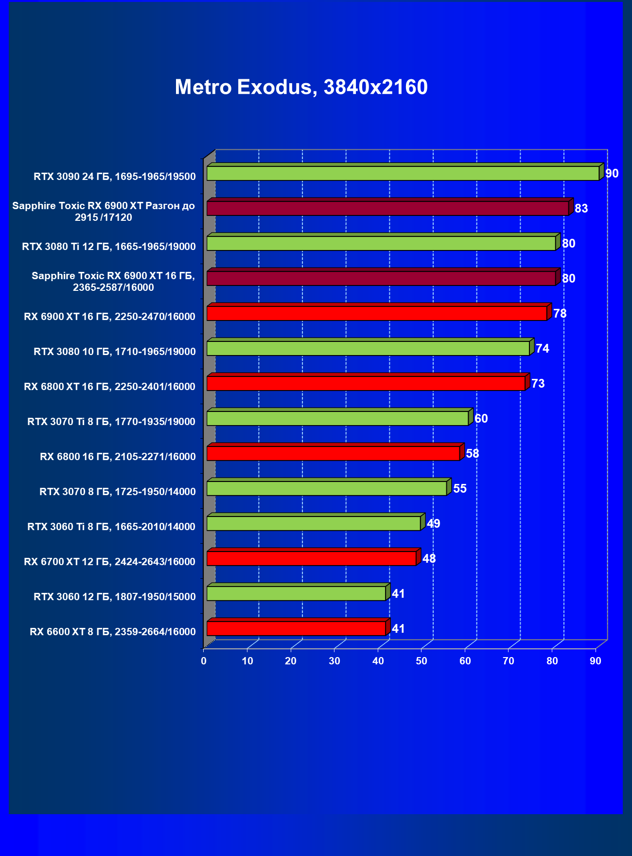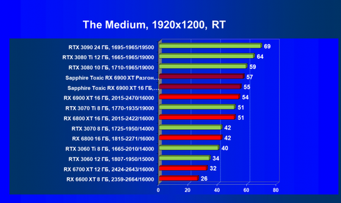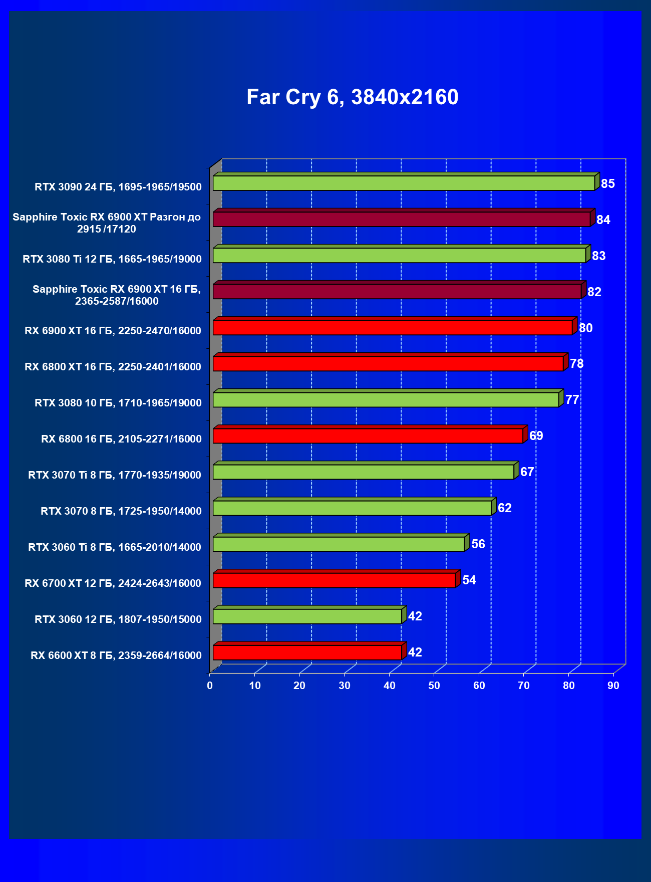 | 07 | RX 6900 XT 16 ГБ, 2015—2470/16000 | 12 | 184 | 158 000 |