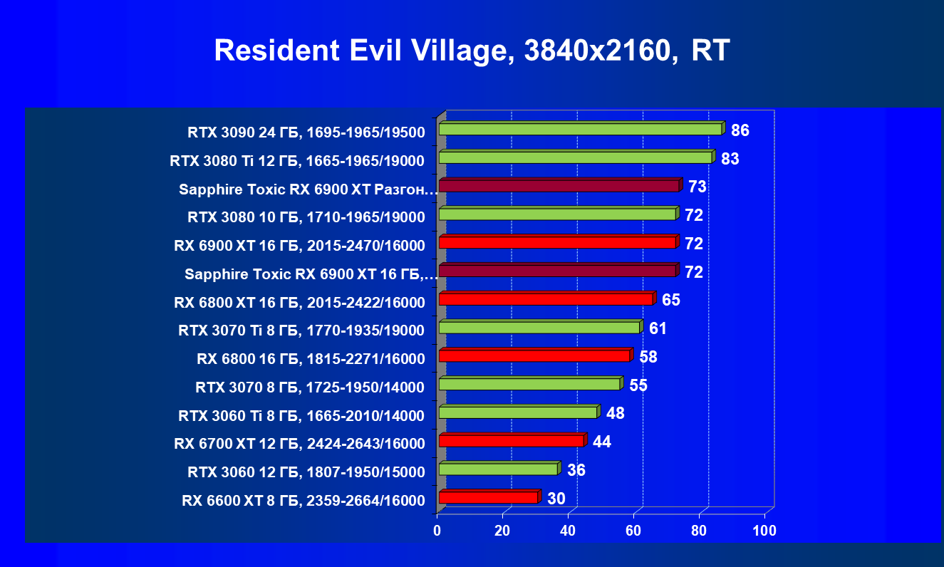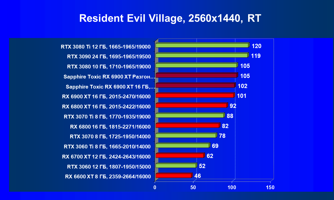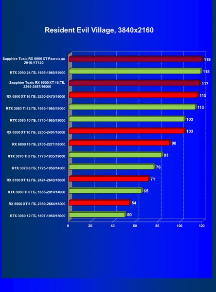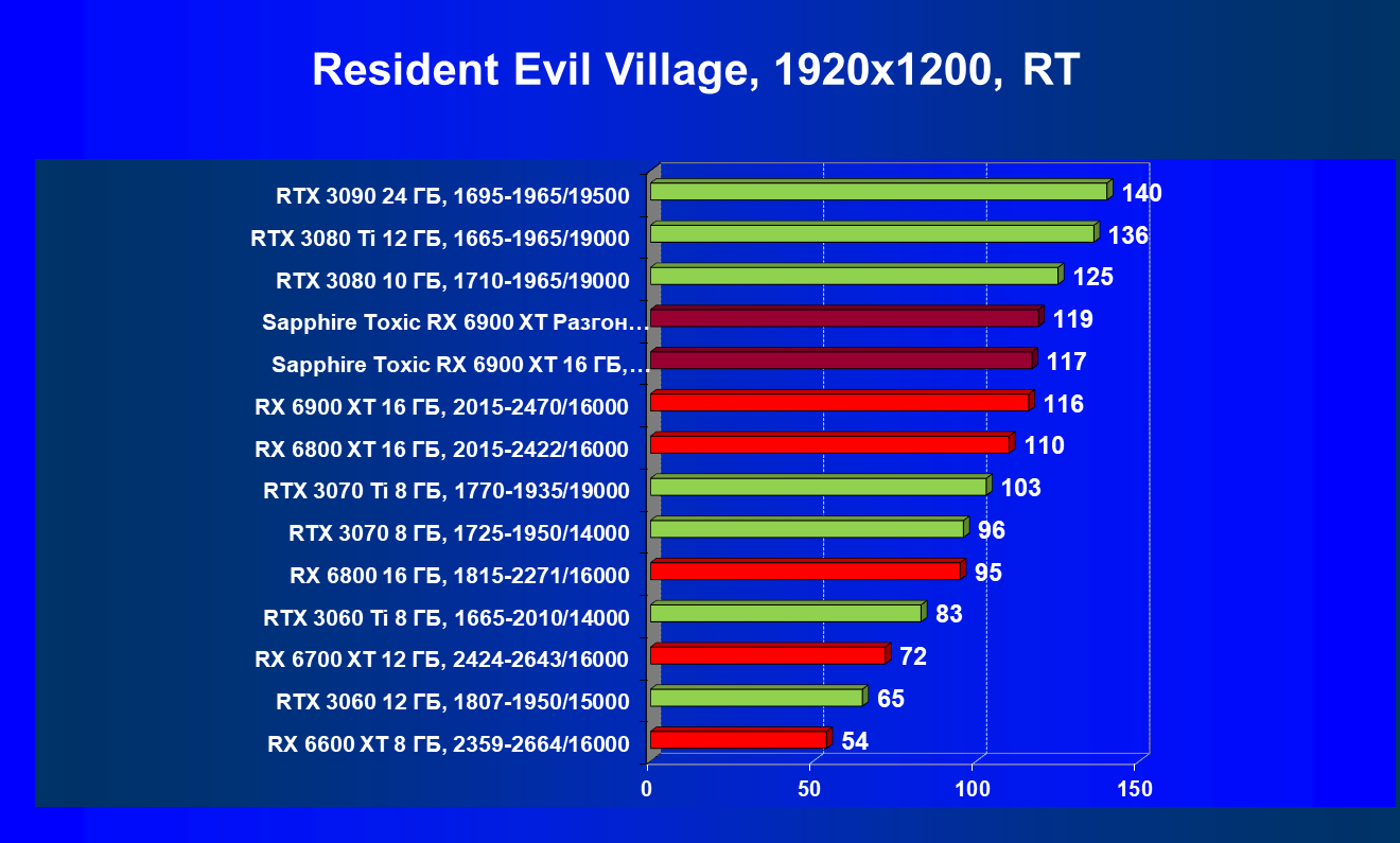 Я уже ранее говорил о том, что в классических играх RX 6900 XT — это просто «пушка»! Мы наблюдаем полное и безоговорочное лидерство карты Sapphire (как и в целом Radeon RX 6900 XT) в играх современного уровня с настройками на максимум. Подчеркну еще раз, — без трассировки лучей.