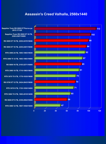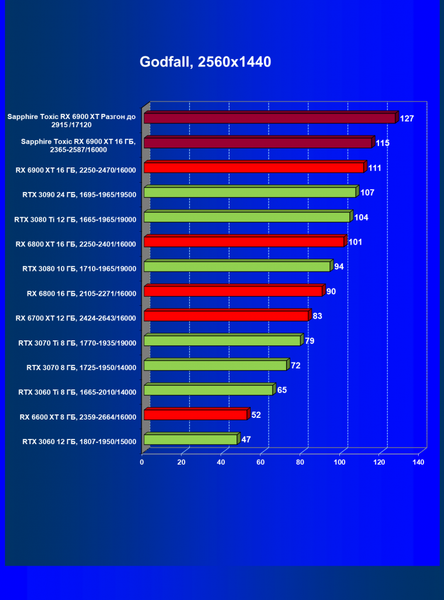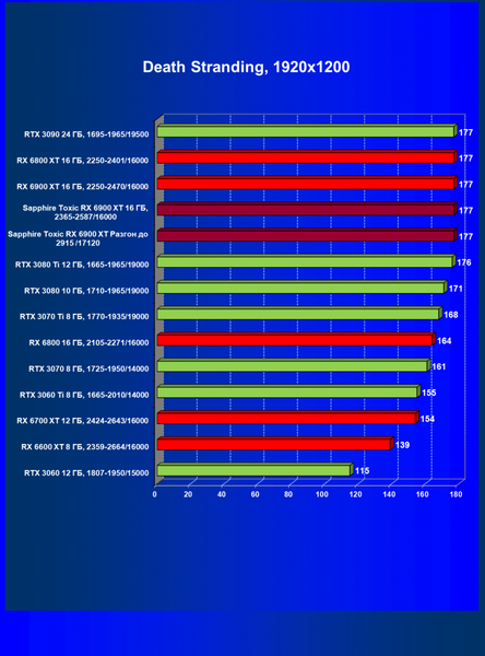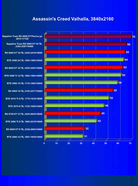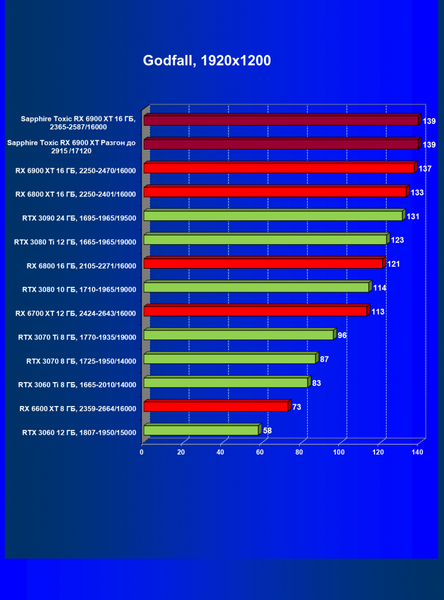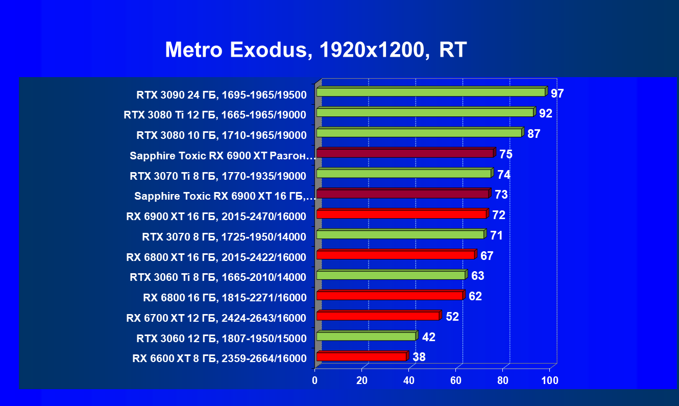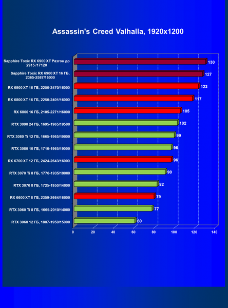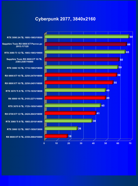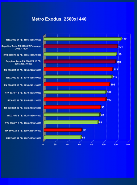 | 11 | Sapphire Toxic RX 6900 XT 16 ГБ, 2365—2587/16000 | 13 | 224 | 171 000 |