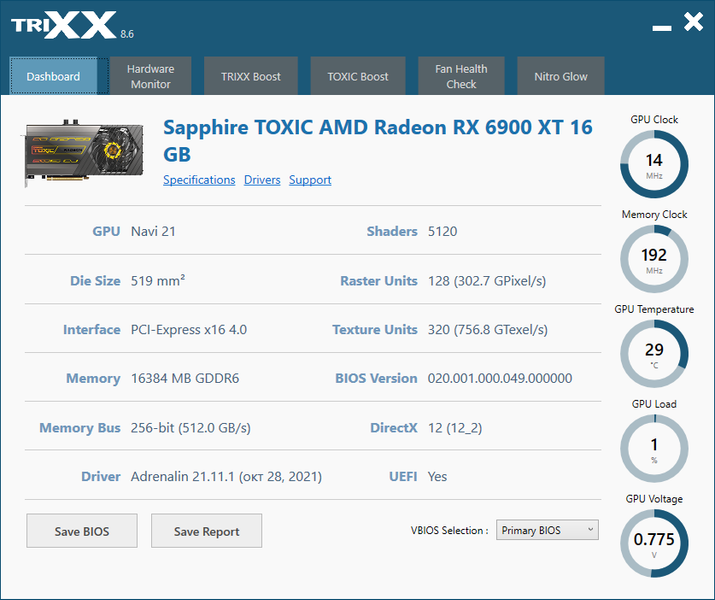 | Sapphire Toxic Radeon RX 6900 XT Limited Edition 16 ГБ 256-битной GDDR6 | ||