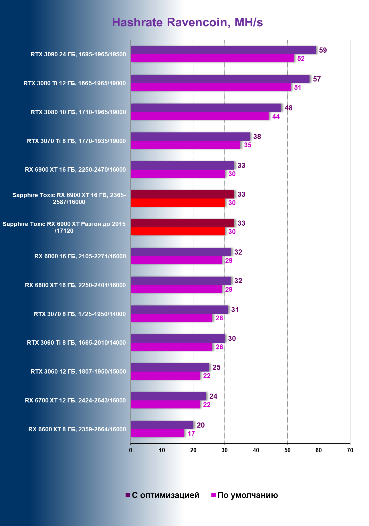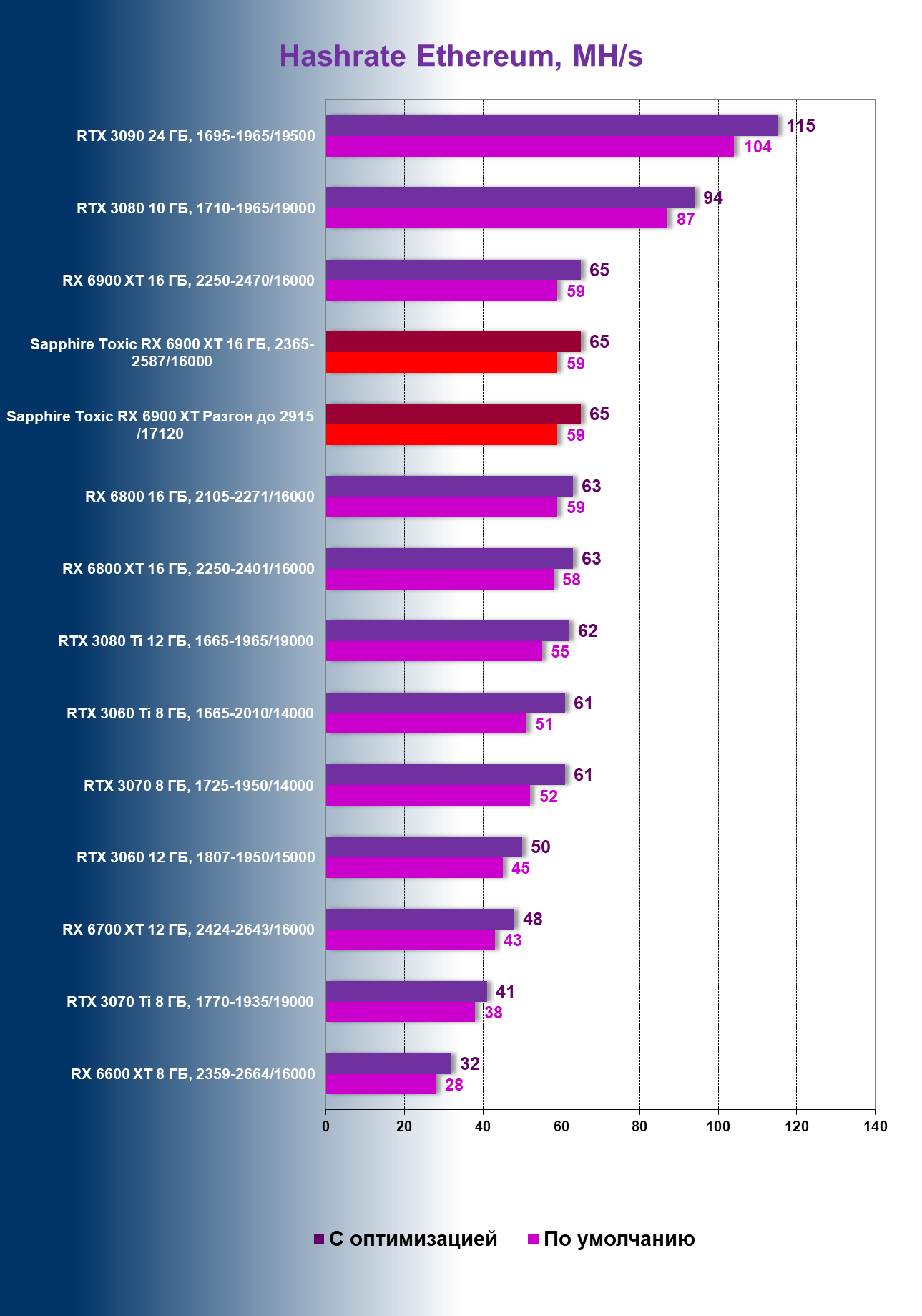 | 04 | Sapphire Toxic RX 6900 XT, разгон до 2915 /17120 | 180 | 11 | 171 000 |
