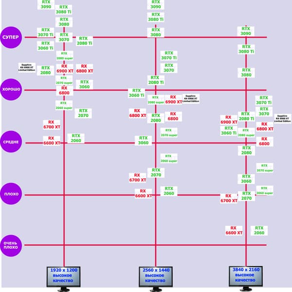 | 05 | RX 6900 XT 16 ГБ, 2015—2470/16000 | 14 | 218 | 158 000 |