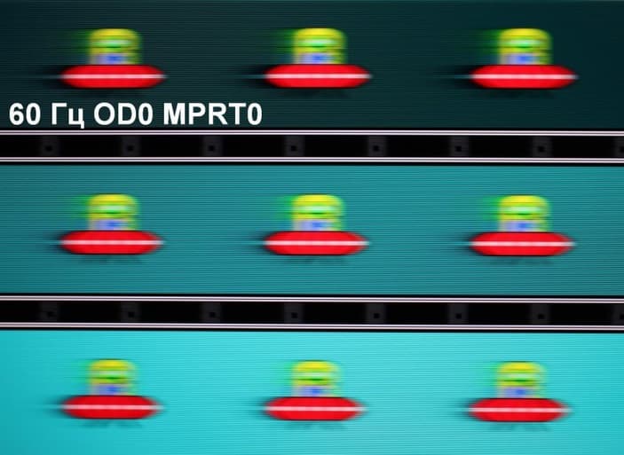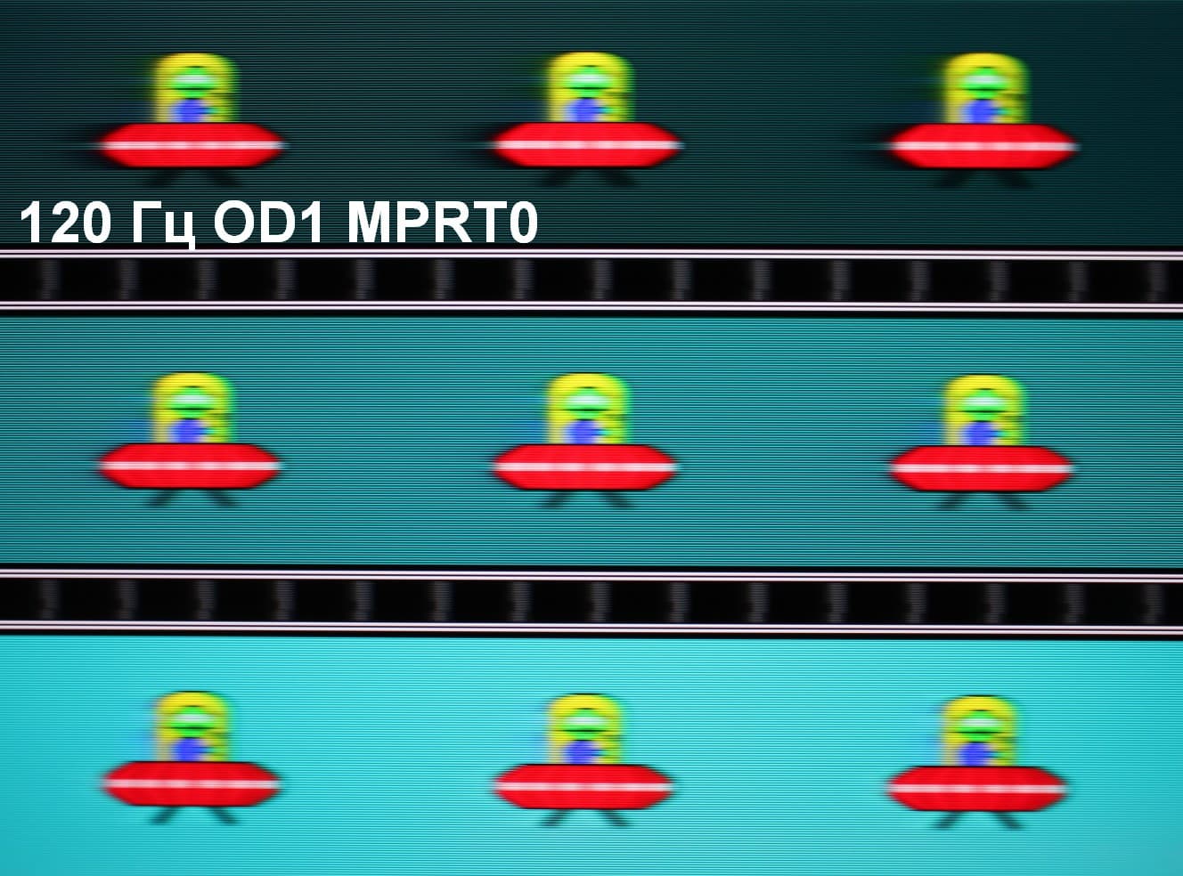 Видно, что при прочих равных условиях четкость изображения повышается по мере роста частоты обновления и при разгоне. Включение MPRT увеличивает четкость вплоть до одного пикселя по горизонтали, но объекты в движении имеют остаточные копии, что снижает положительный эффект.