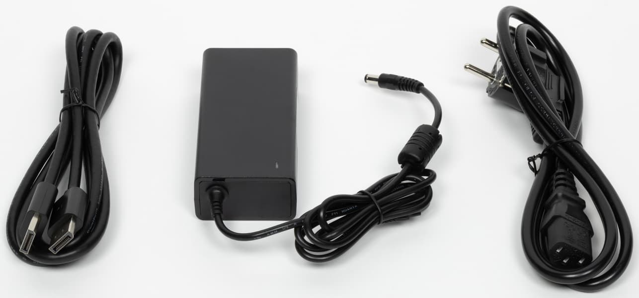 В комплект поставки входит только один интерфейсный кабель — DisplayPort, который недлинный, но с виду качественный.