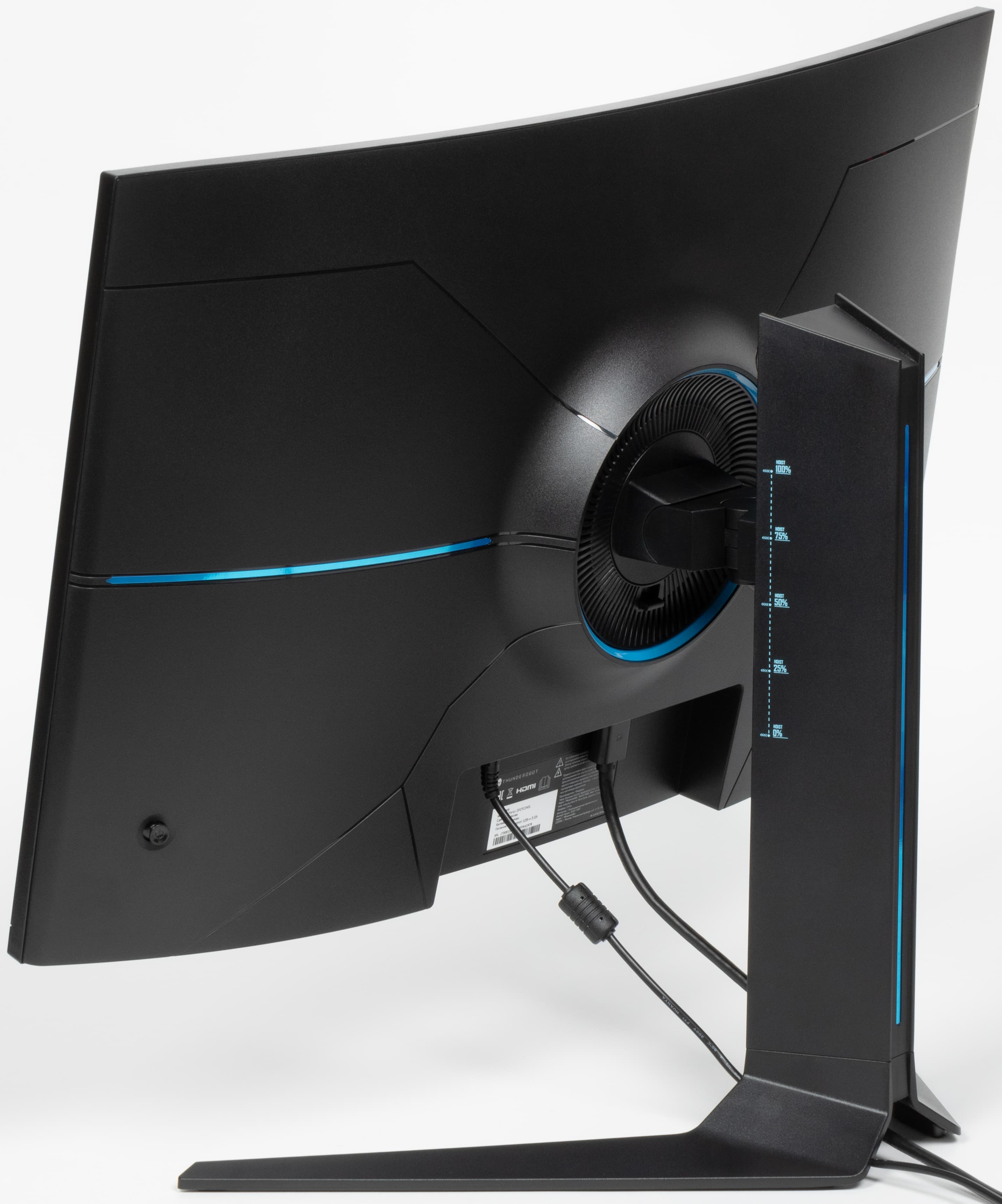 Отходящие кабели можно пропустить через подъем в центре основания подставки: так сзади монитор выглядит аккуратнее.
