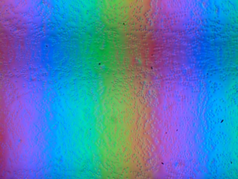 Зерно этих дефектов в несколько раз меньше размеров субпикселей, поэтому фокусировка на микродефектах и «перескок» фокуса по субпикселям при изменении угла зрения выражены слабо, из-за этого нет и «кристаллического» эффекта.