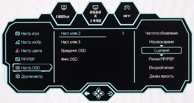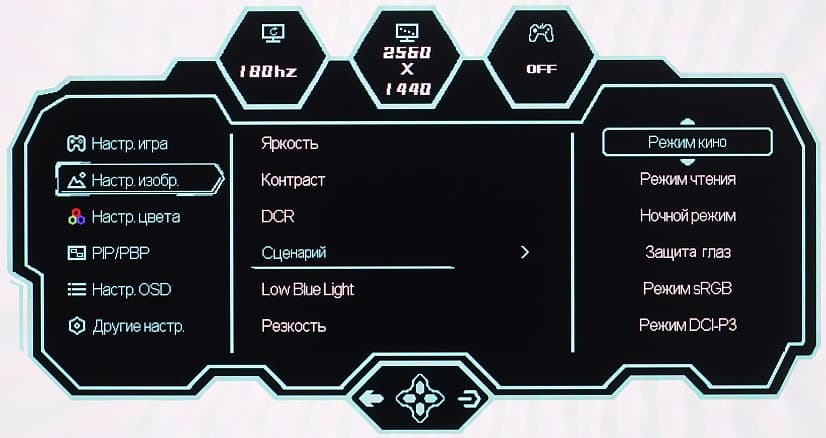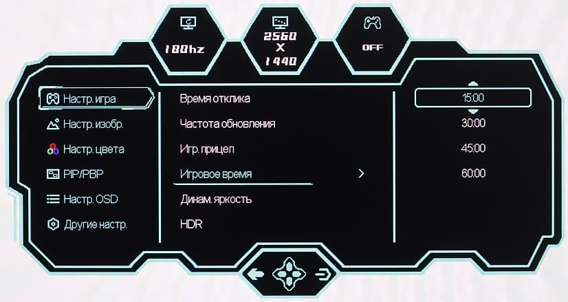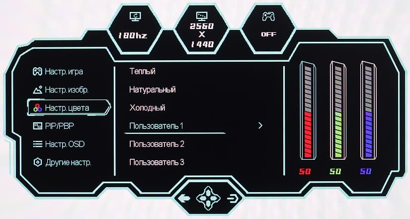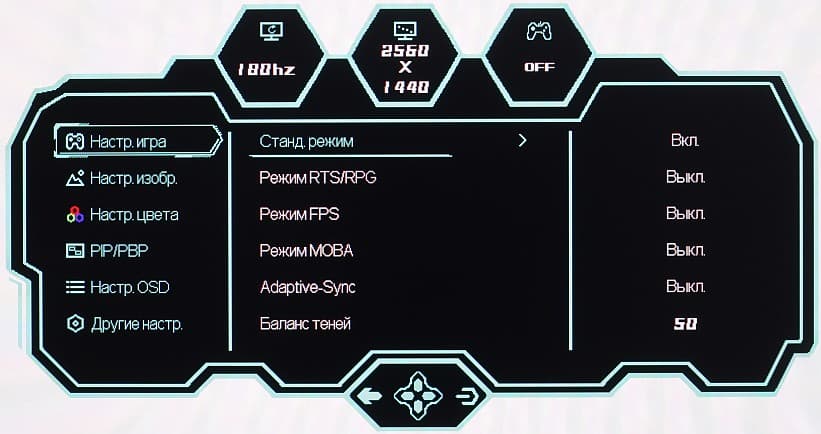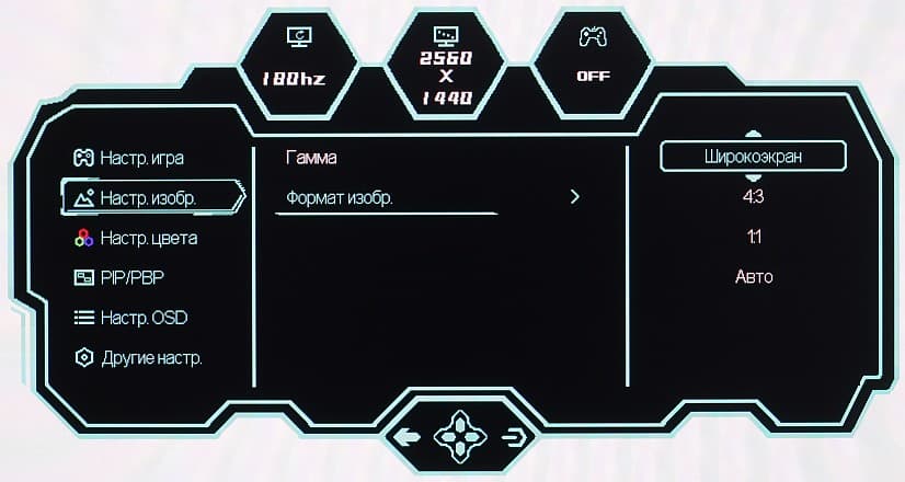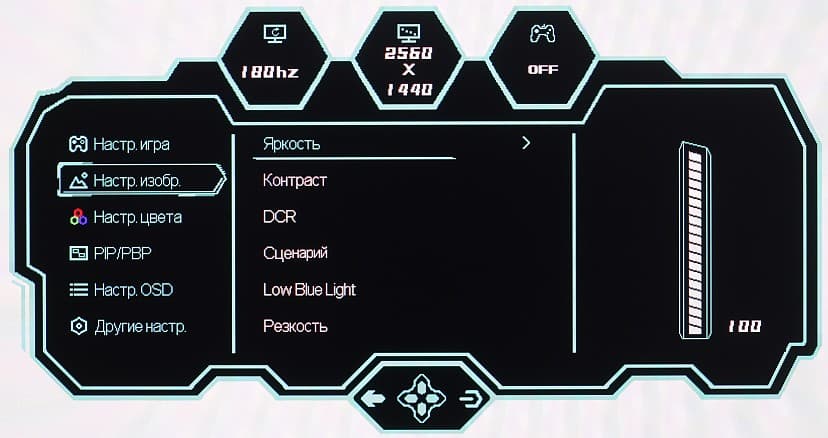 Настроек, влияющих на яркостный и цветовой баланс, не очень много, что для игрового монитора ожидаемо.